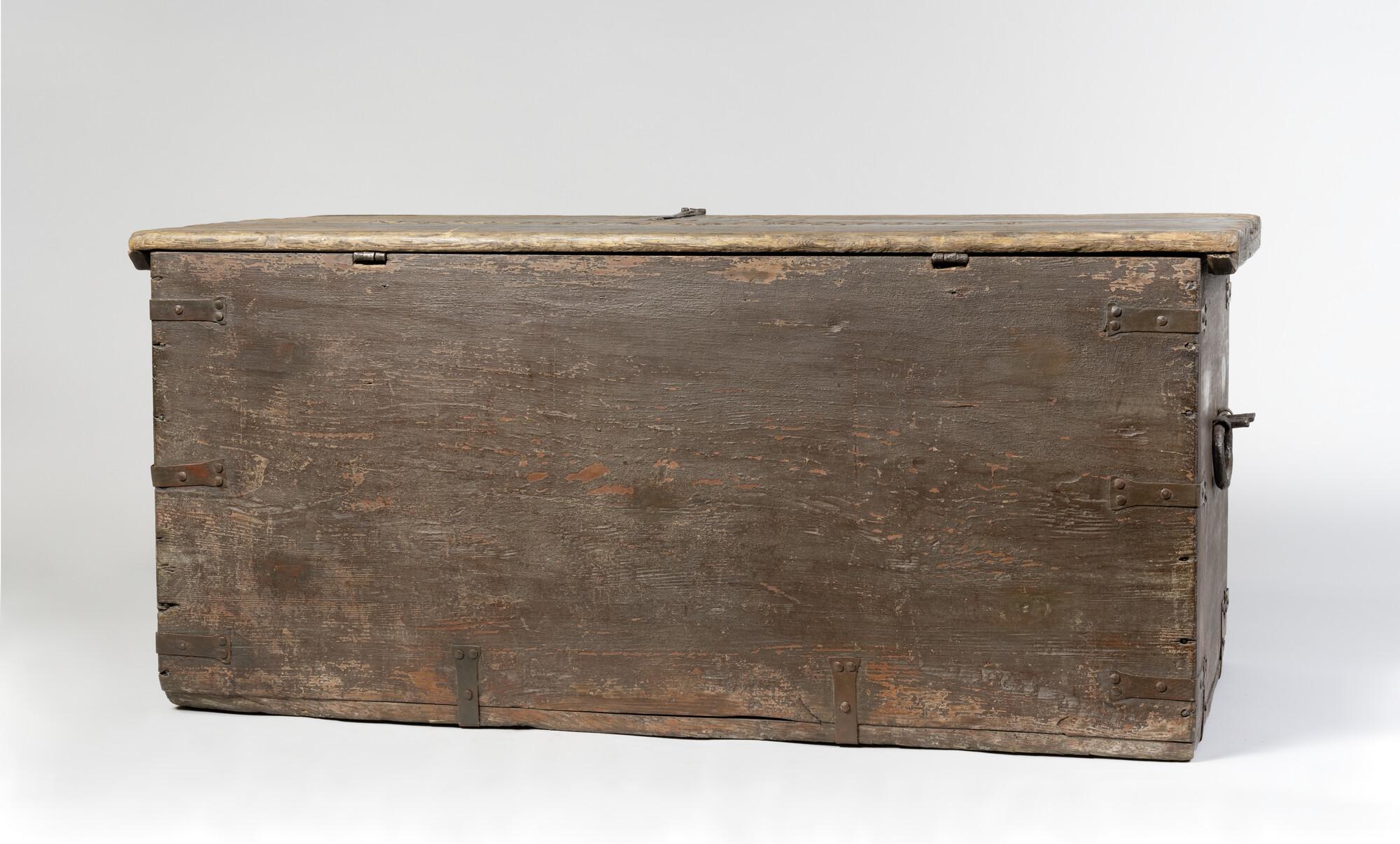 Scheepskist, hout, beschilderd, met ijzerbeslag