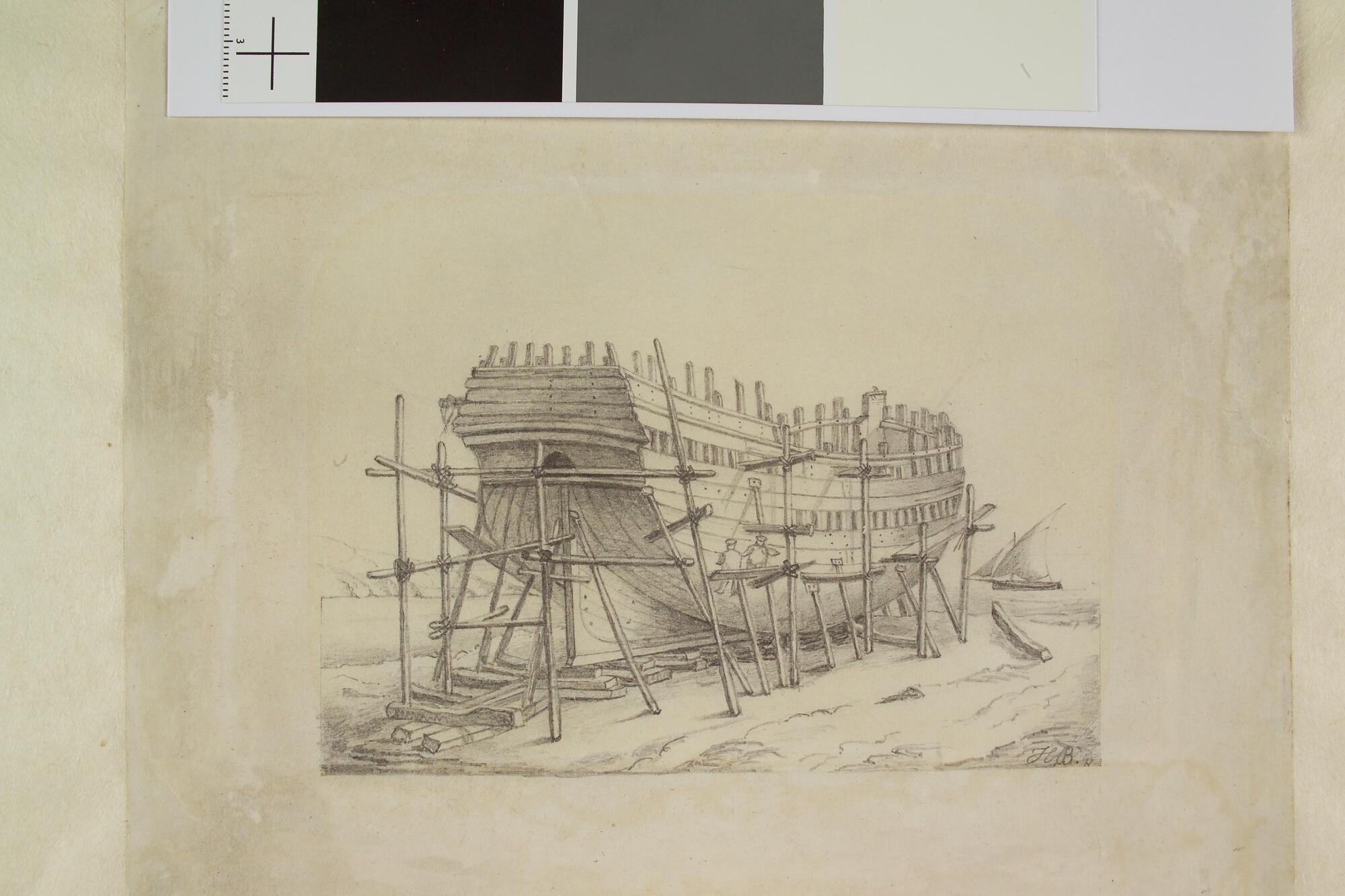 Een schip in aanbouw.
