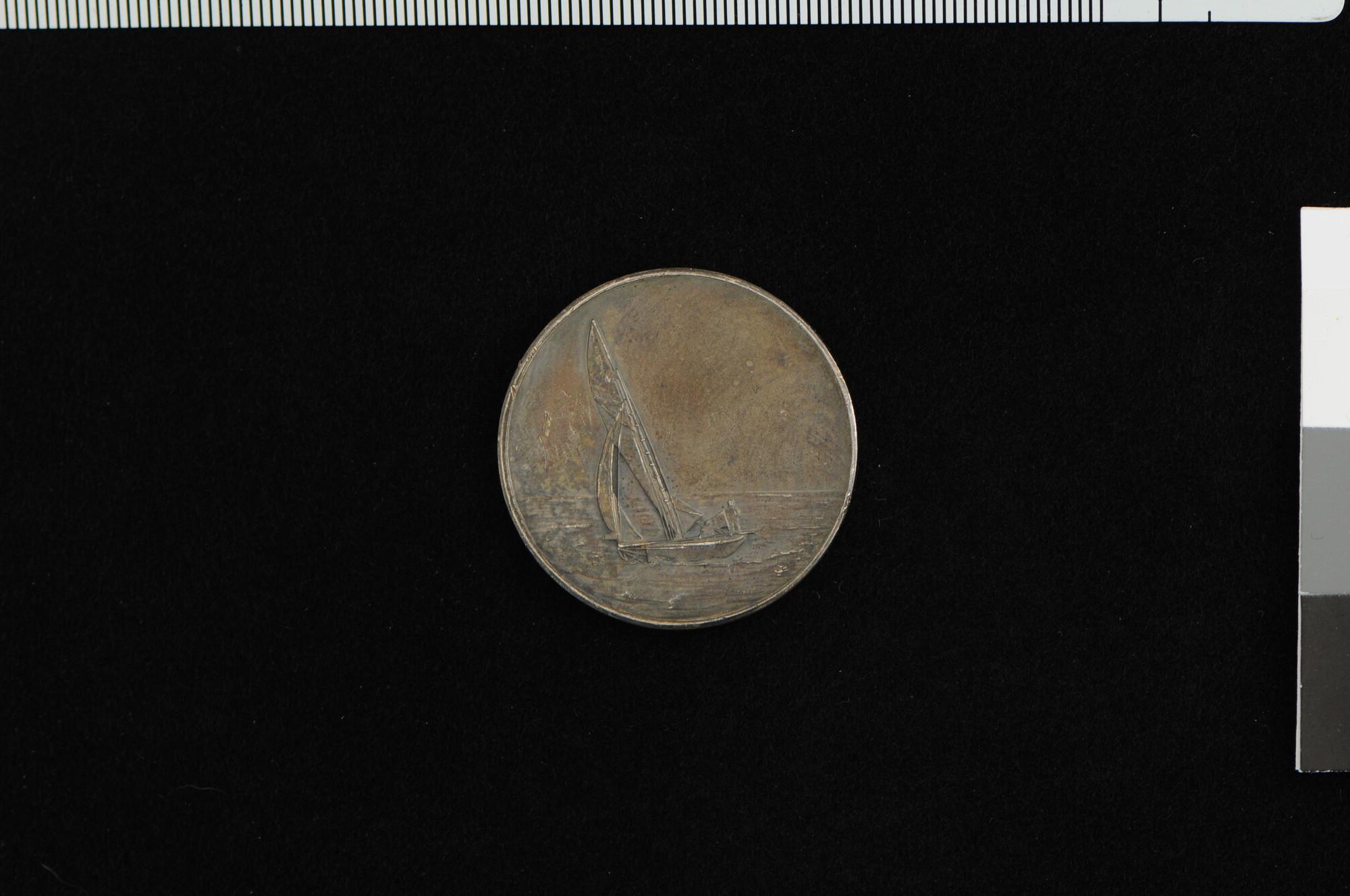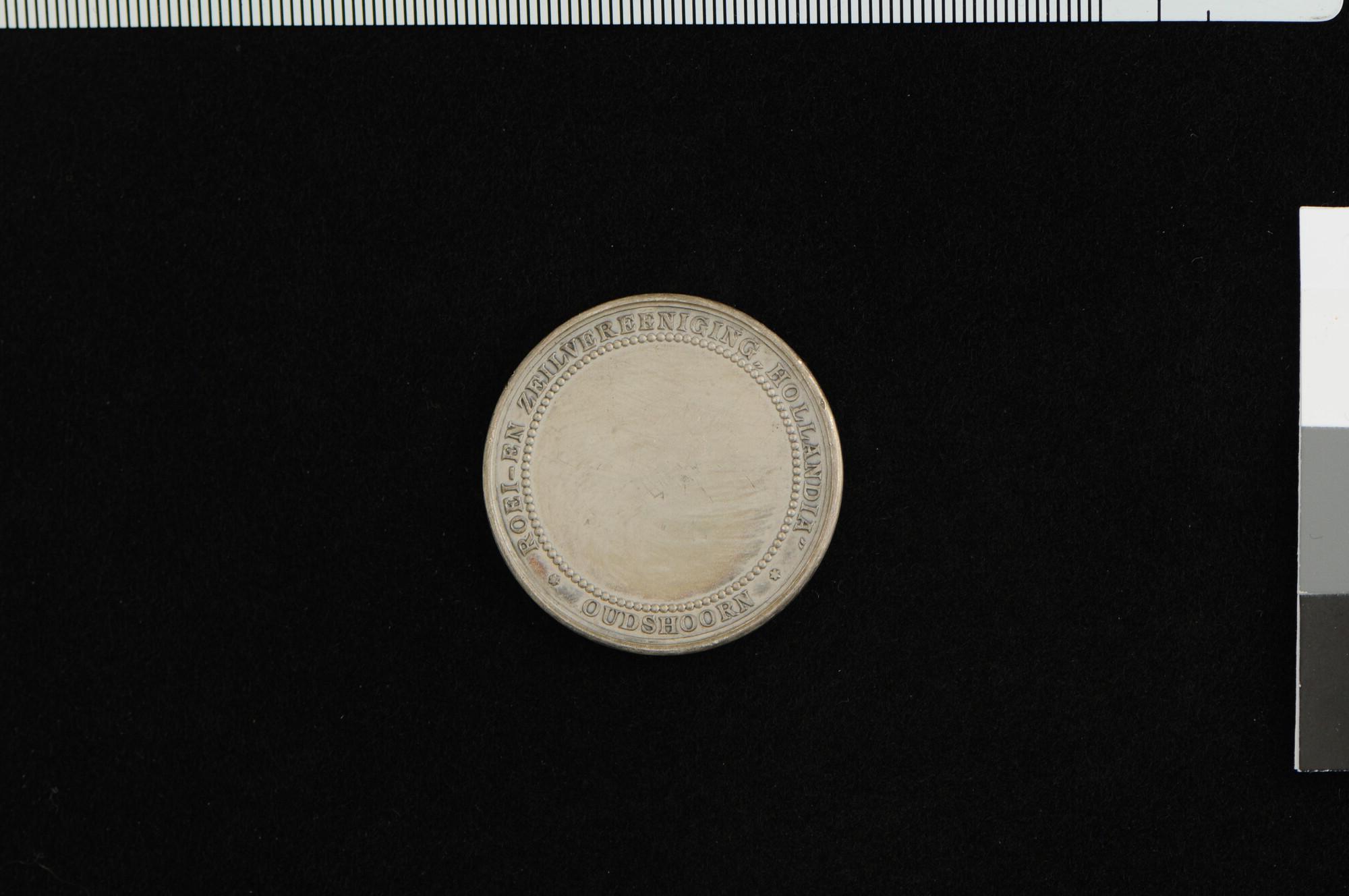 Zilveren prijspenning van de Roei- en Zeilvereeniging "Hollandia" te Oudshoorn, 1889.