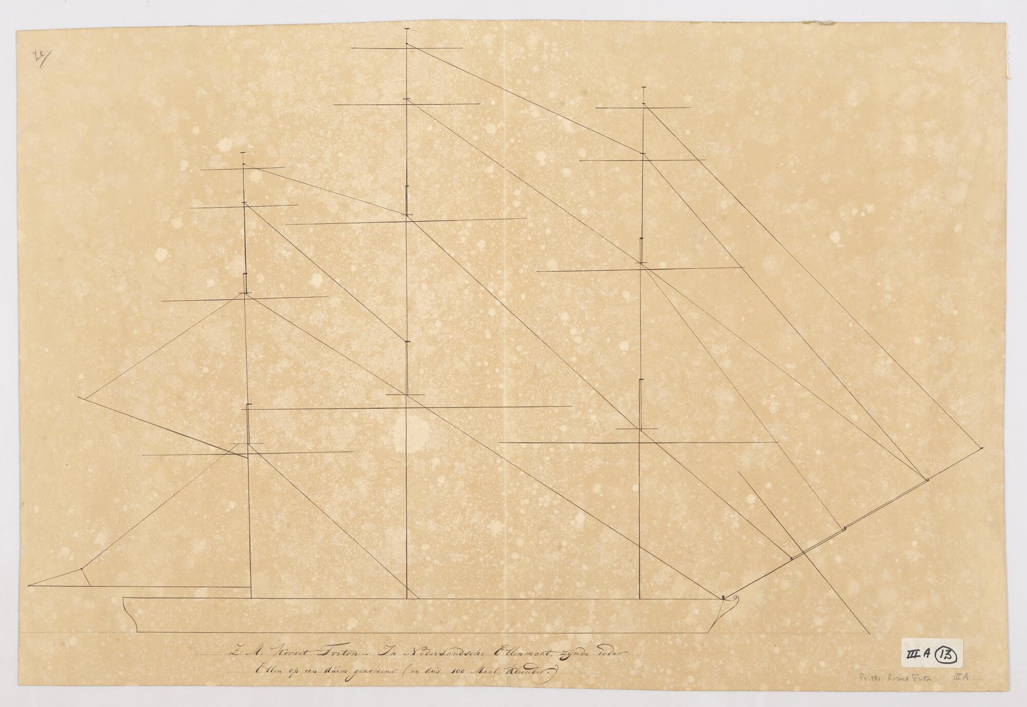 Tuigtekening van het korvet 'Triton' van 28 stukken