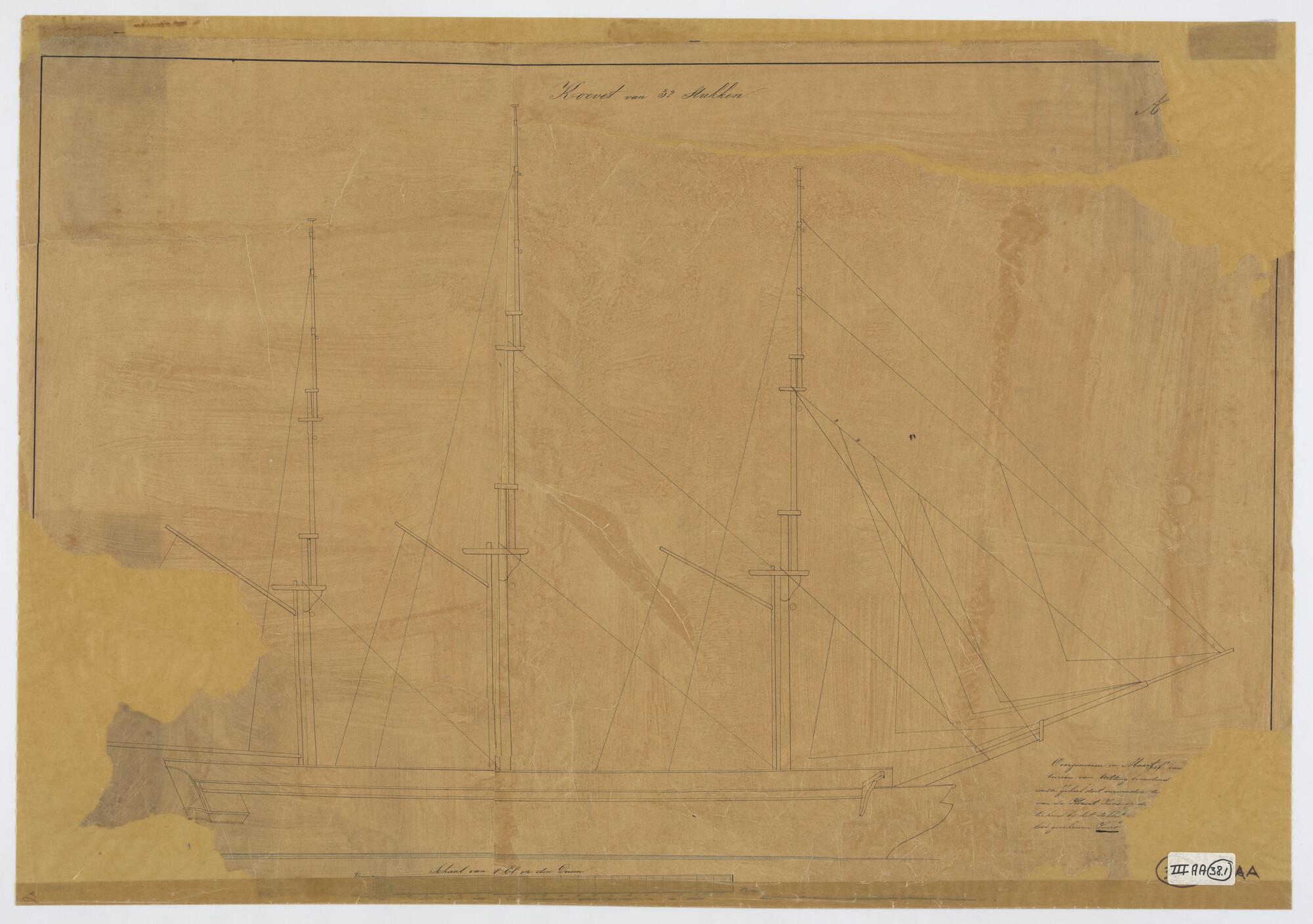 Tuigplan van het korvet Zr.Ms. Juno