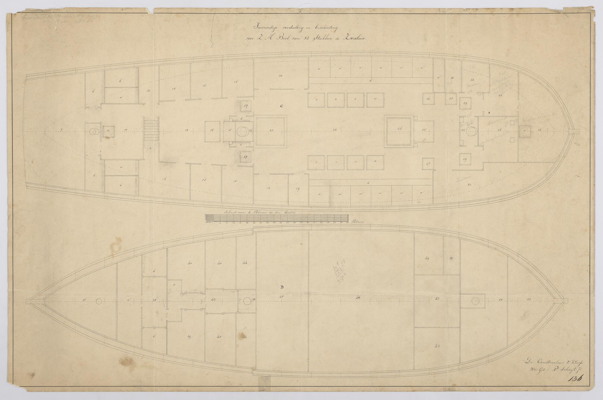 Indelingsplan van de brik Zr.Ms. 'Zwaluw' van 18 stukken
