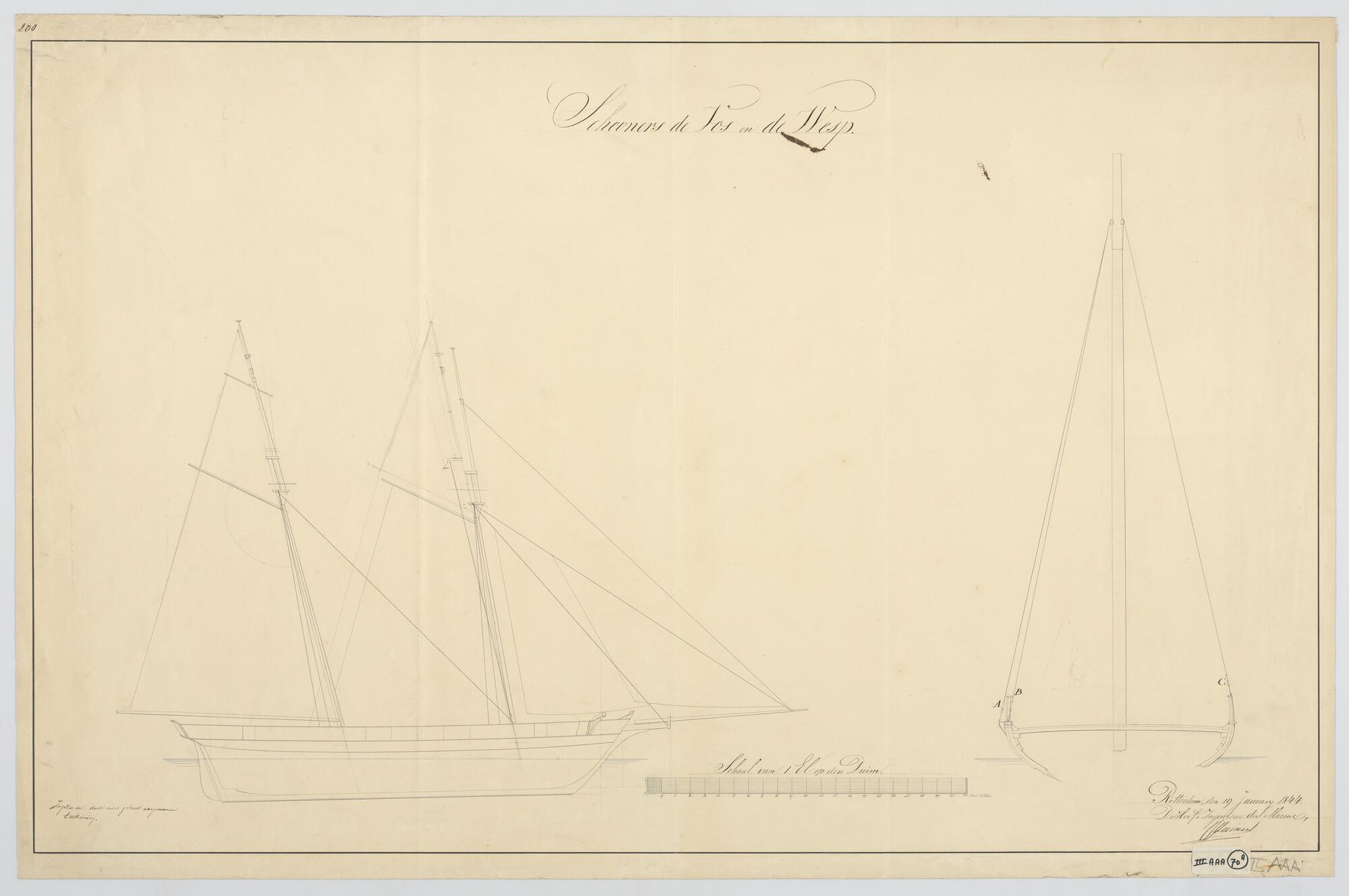 Tuigplan van de schoeners Hr.Ms. 'Vos' en 'Wesp'
