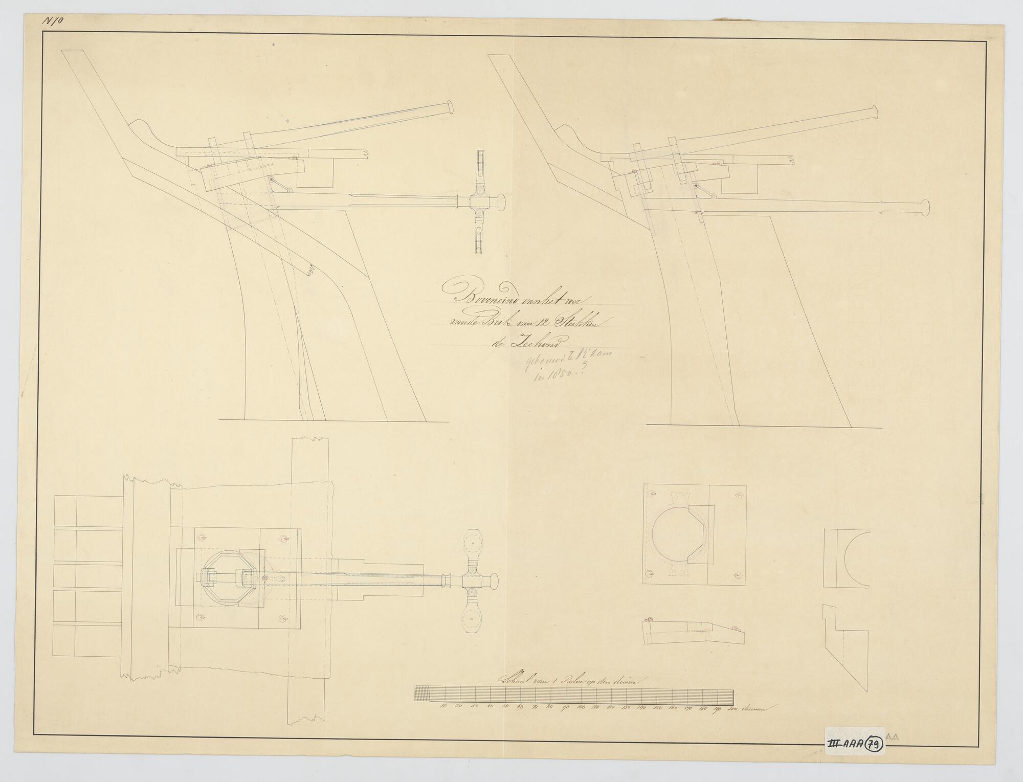 Constructietekening roer van de brik Zr.Ms. 'Zeehond' van 12 stukken