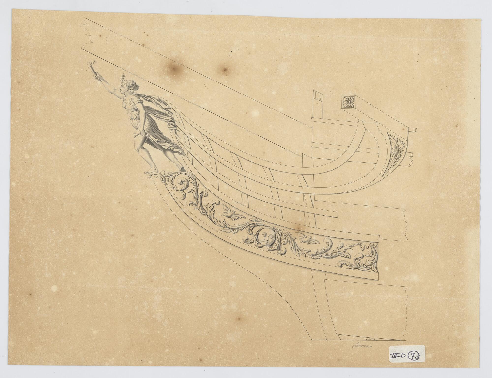 Fregat Aurora 1802 Schegbeeld, vrouwen figuur met ster in hethaar en fakkel in rechterhand.