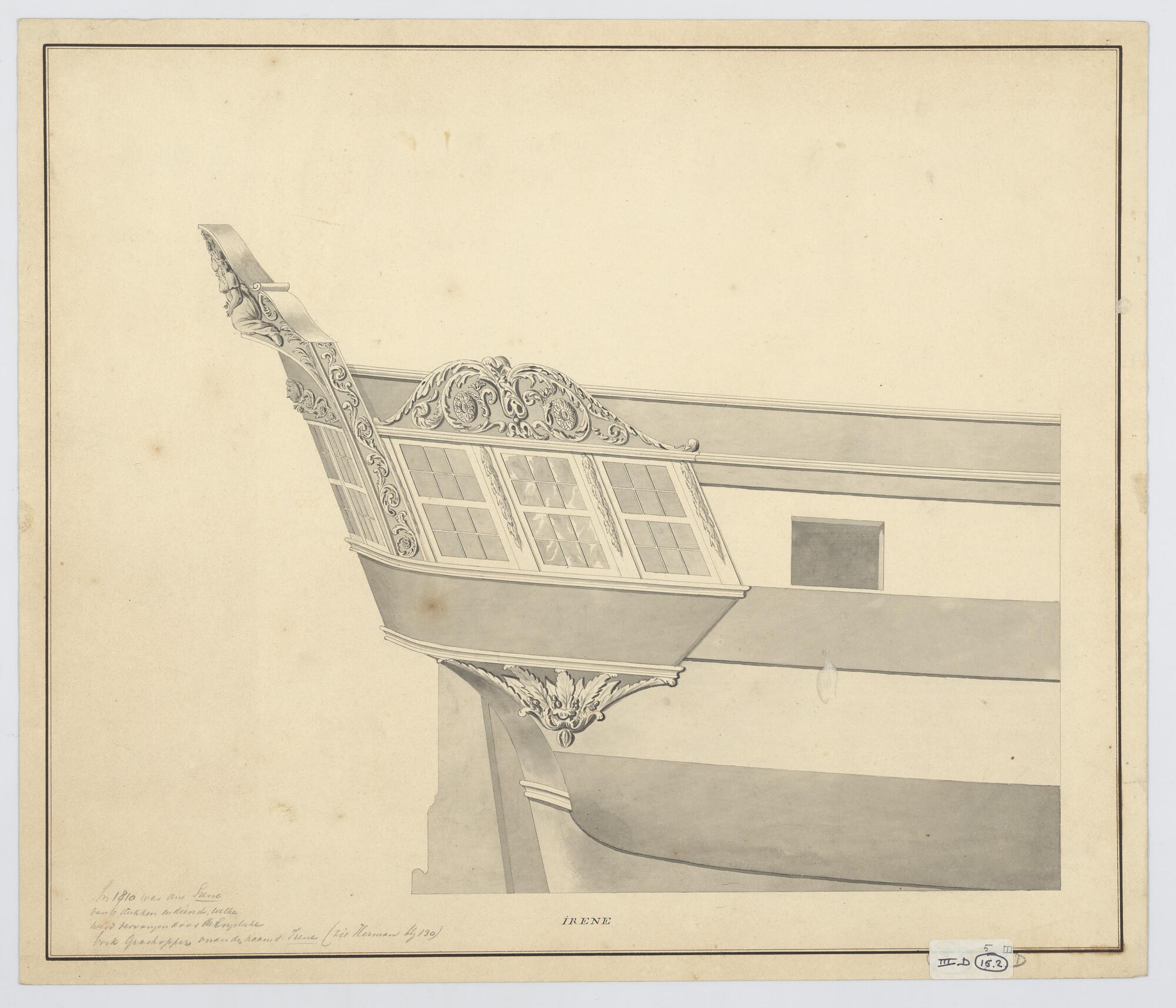 Ontwerp van de zijgalerij met drie ramen waarboven arabesken van de brik 'Irene'.