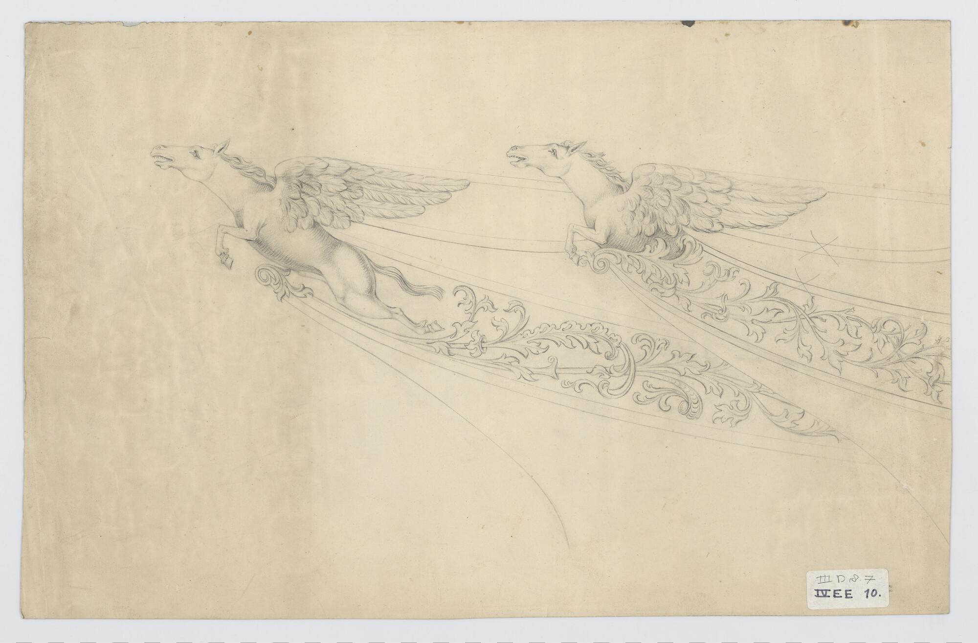 Twee ontwerpen voor het schegbeeld van de bark Pegasus