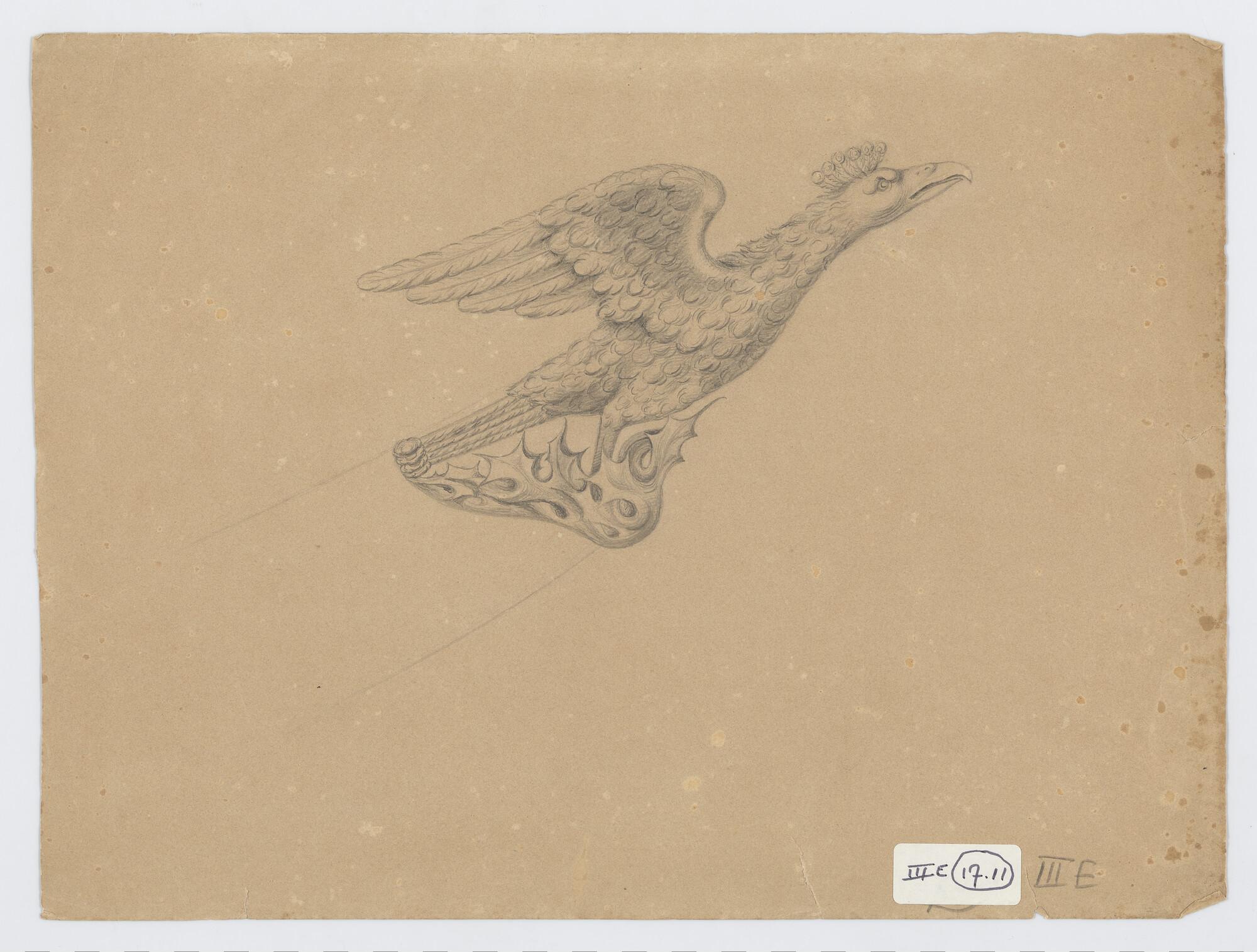 Ontwerp van een schegbeeld voor een onbekend schip, met een gekroonde adelaar.