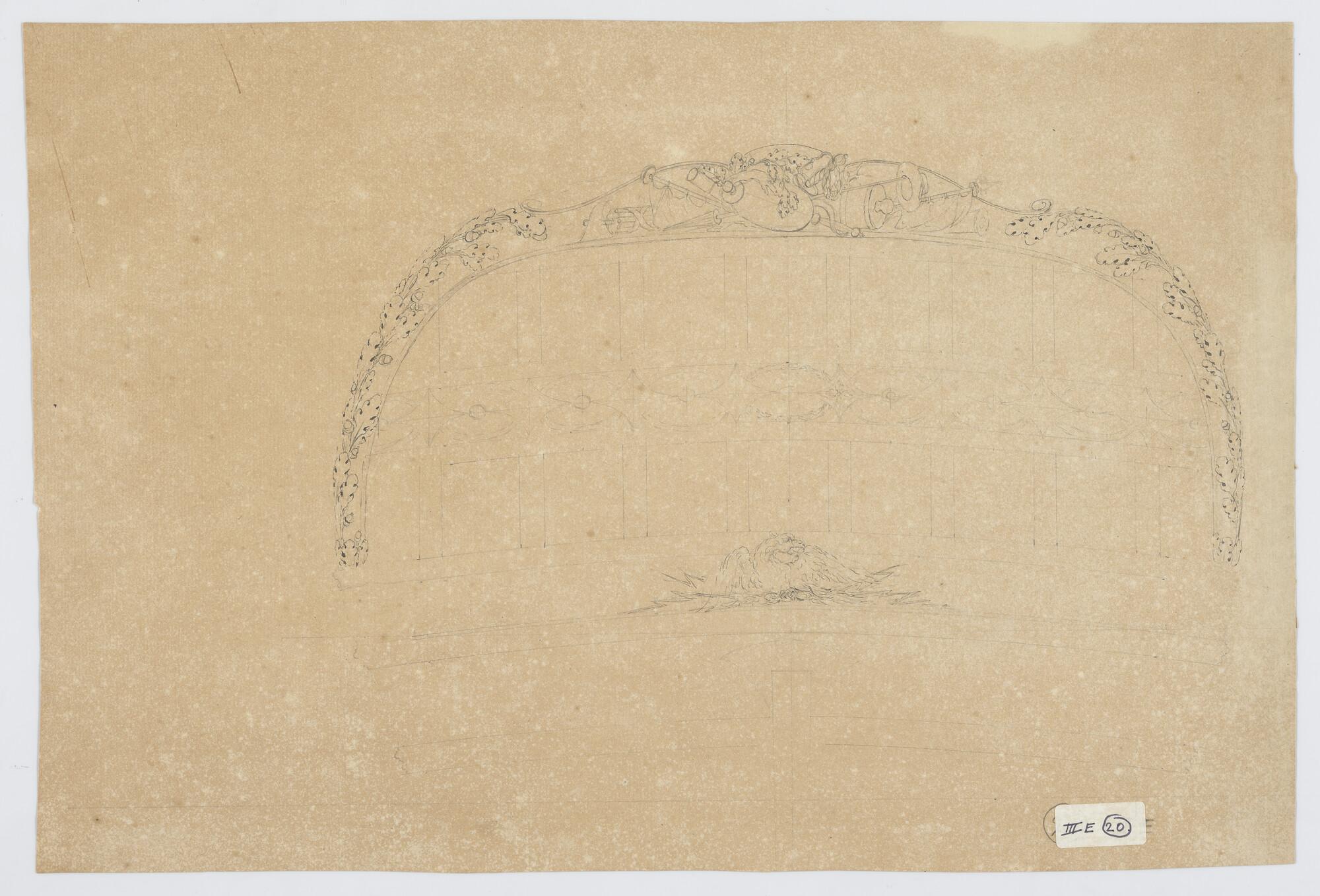 Niet afgemaakt ontwerp van een spiegelversiering van een onbekend schip.