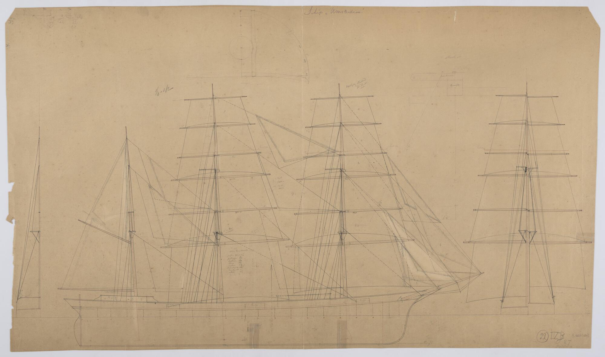 Zeilplan van het stalen barkschip 'Amsterdam'