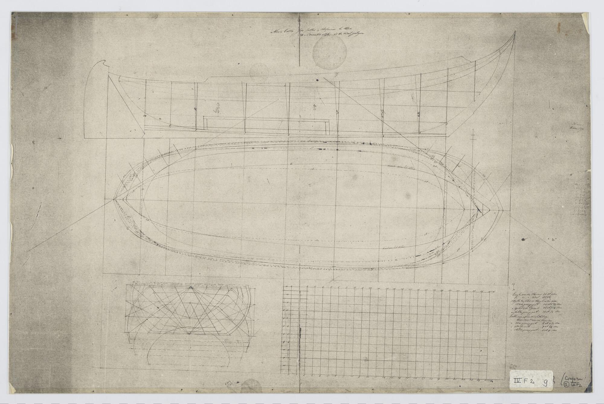 Zijaanzicht van een hoekbotter (1876) 51 x 15 3/4 x 6.8½ voet.