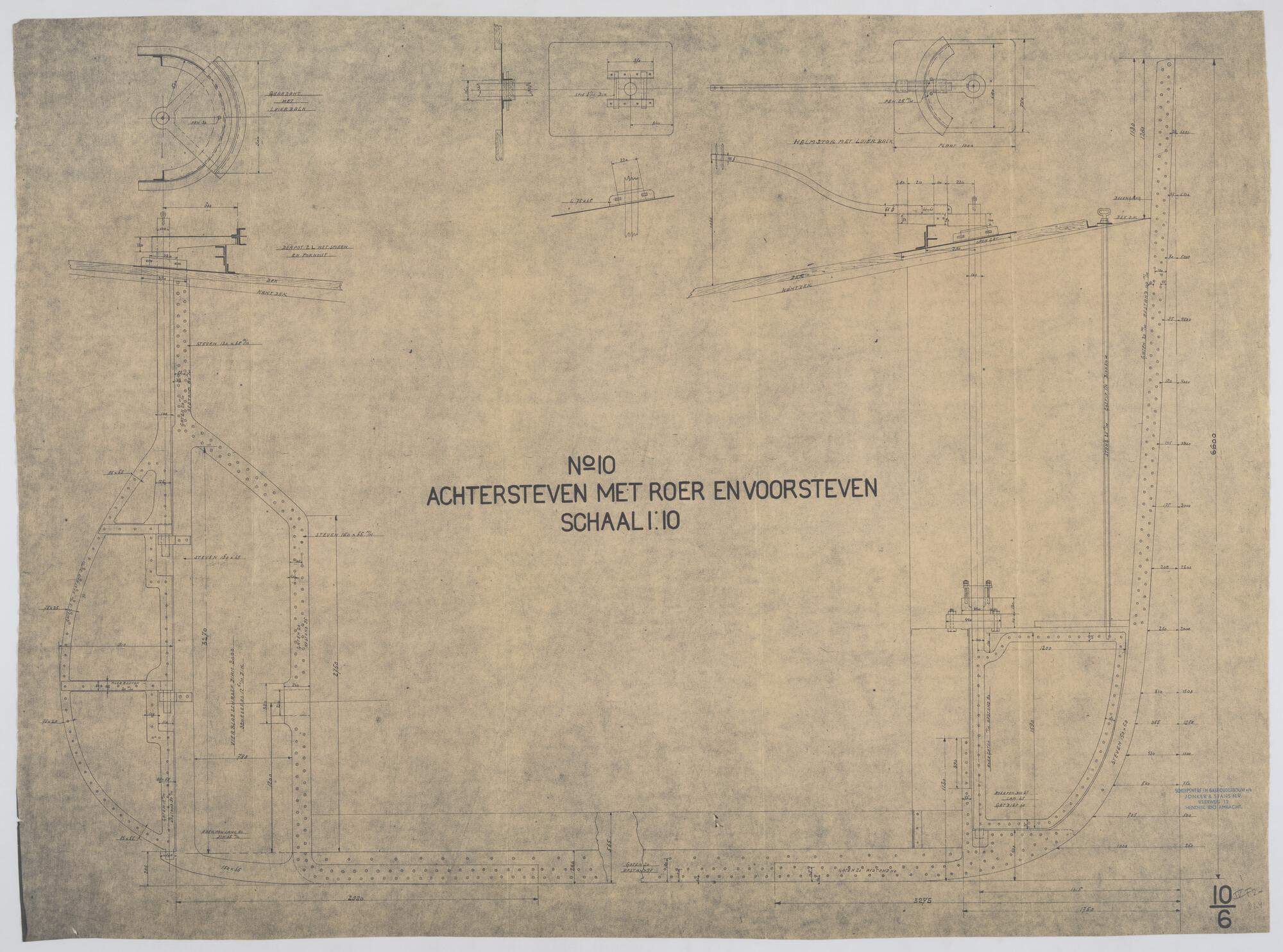 Achtersteven met roer, voorsteven van de stoomlogger Bertina