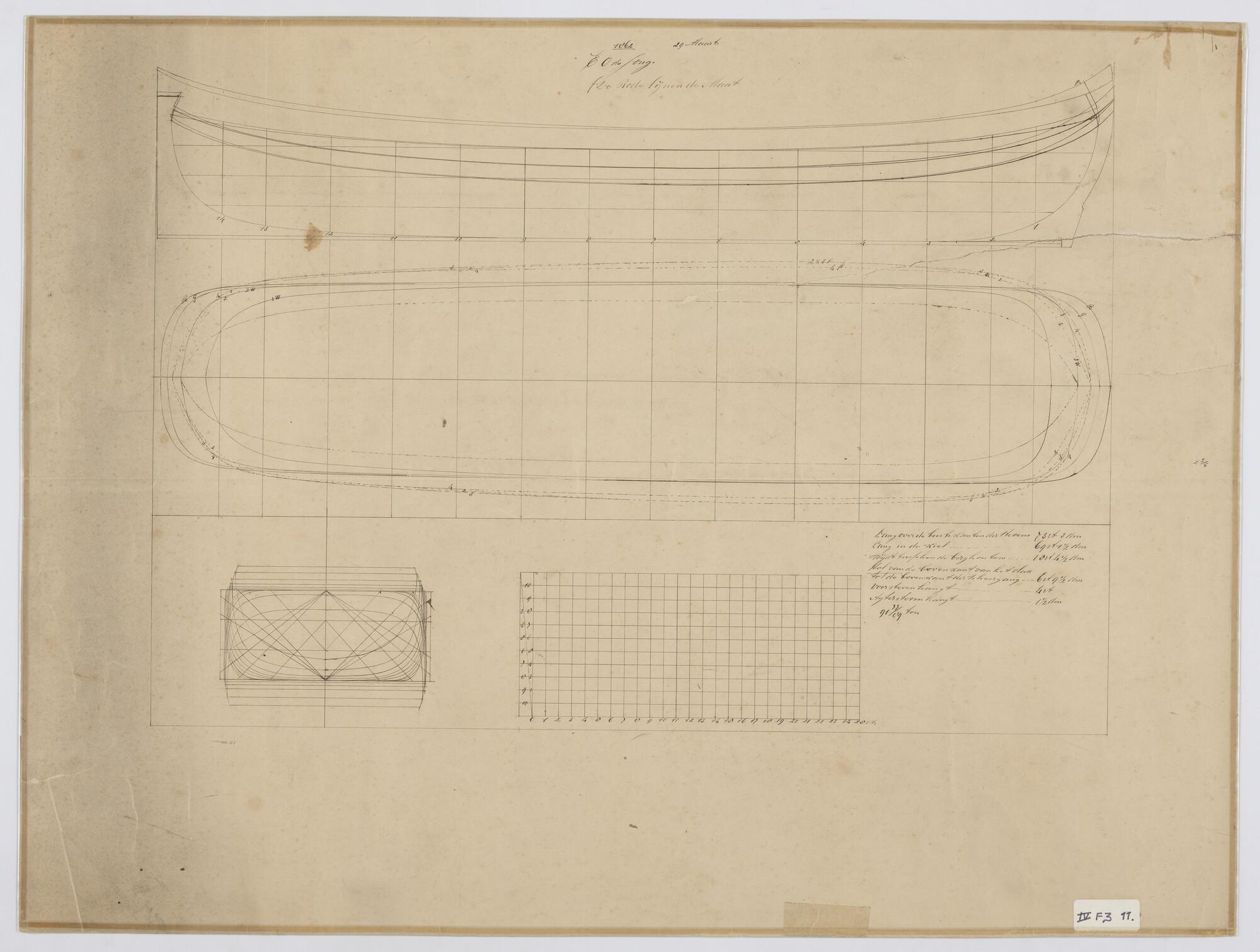 Lijnenplan van een tjalk 1862 Lang 73.3 voet