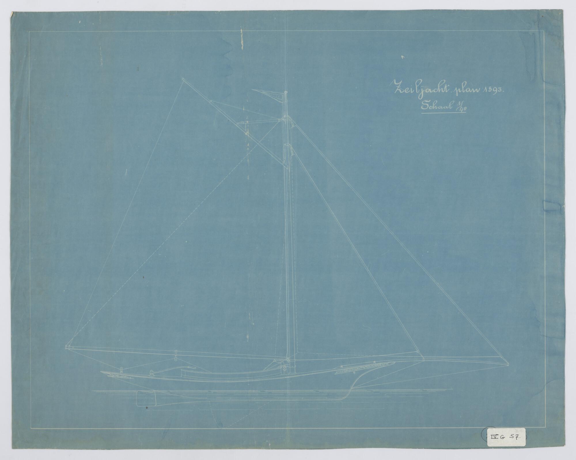 Zijaanzicht met tuigplan van een midzwaardjacht 1893