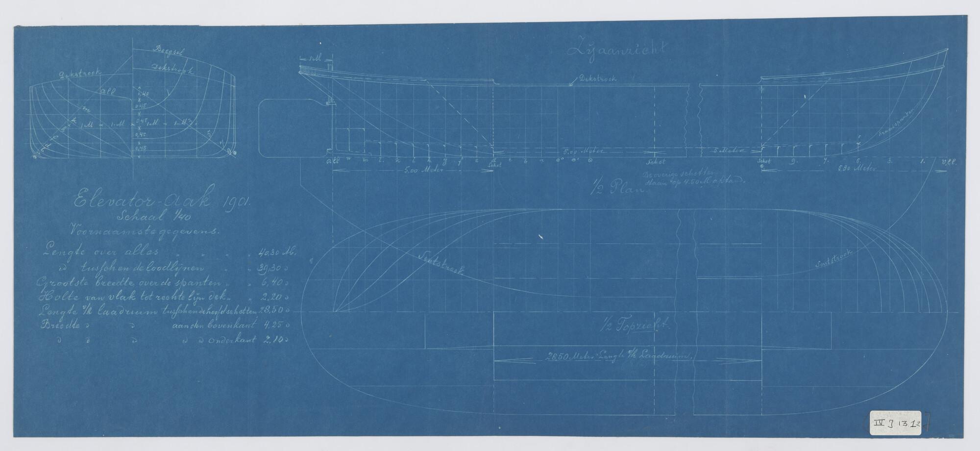 Dwarsdoorsnede, verticale langsdoorsnede en bovenaanzicht van een Elevator [...]