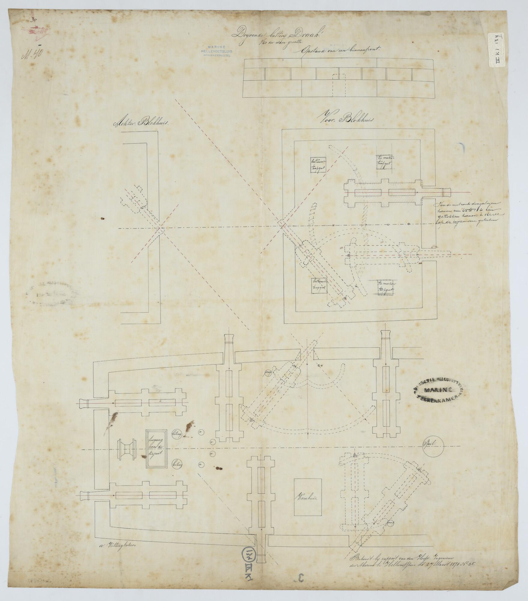Drijvende batterij "Draak", 1859 (ex- fregat Zr.Ms. "Ceres", 1820). Bovenaanzichten van het blokhuis.