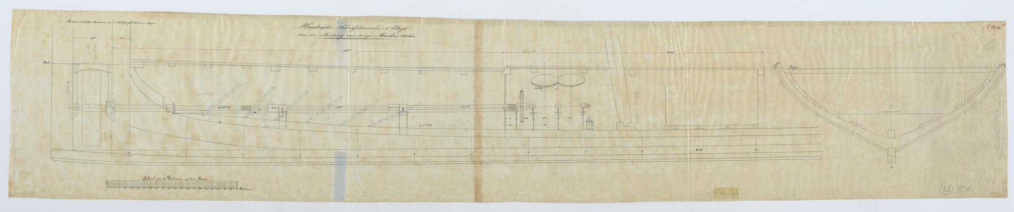 Schoener met stoomvermogen Zr.Ms. "Montrado", 1853 - 1854. Schroefasleiding en machine / ketelfundaties.