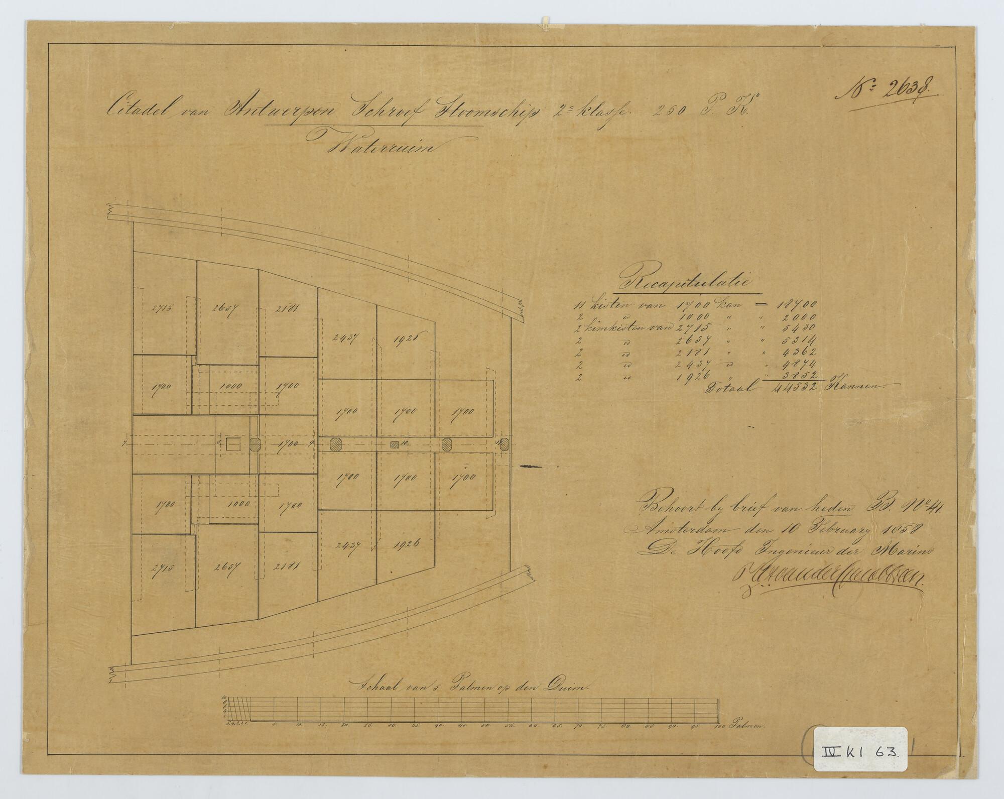 Het schroefstoomschip 2de klasse Zr.Ms. "Citadel van Antwerpen", 1856. Waterruim.
