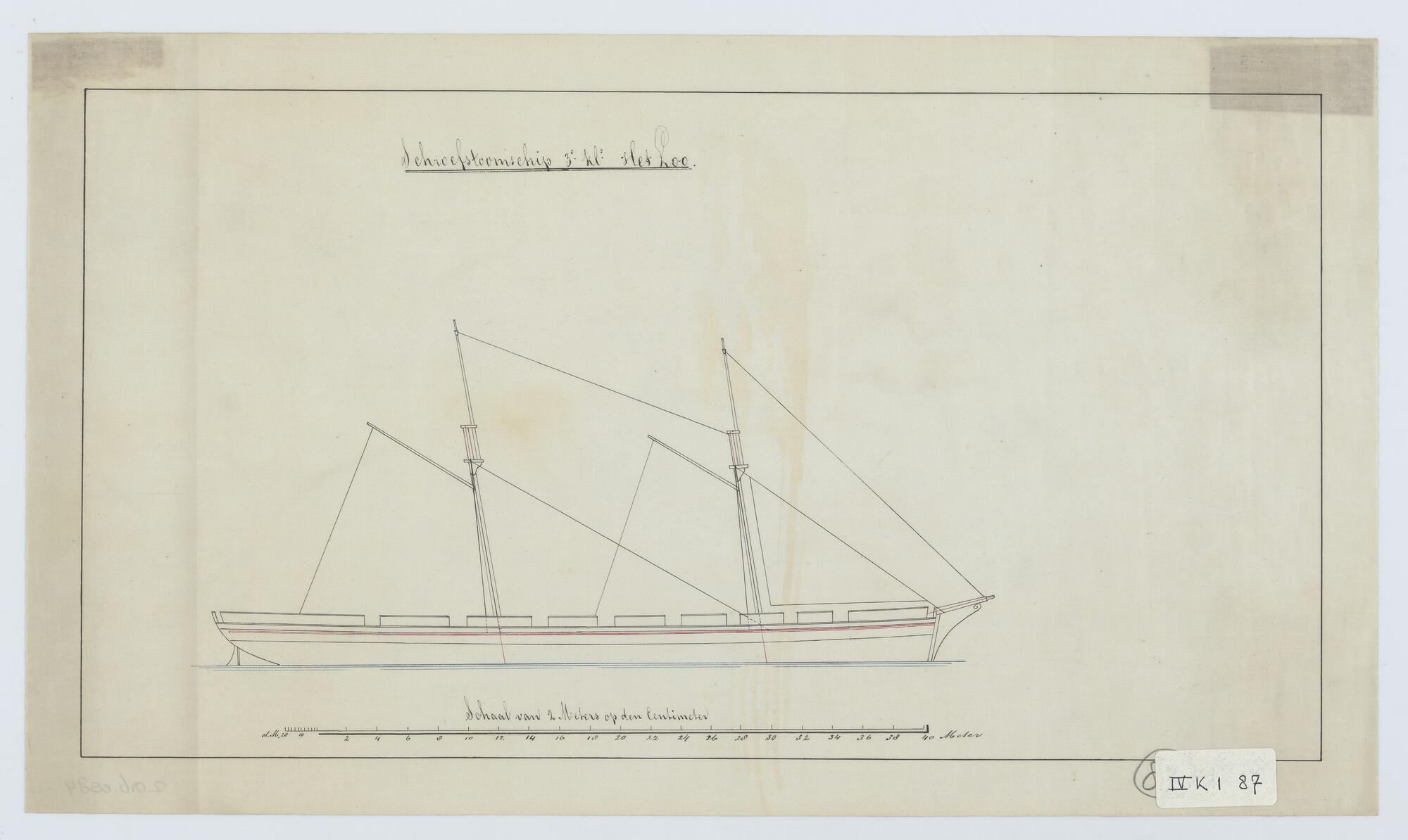 Het schroefstoomschip 3de klasse Zr.Ms. "Het Loo", 1858. Tuigtekening.