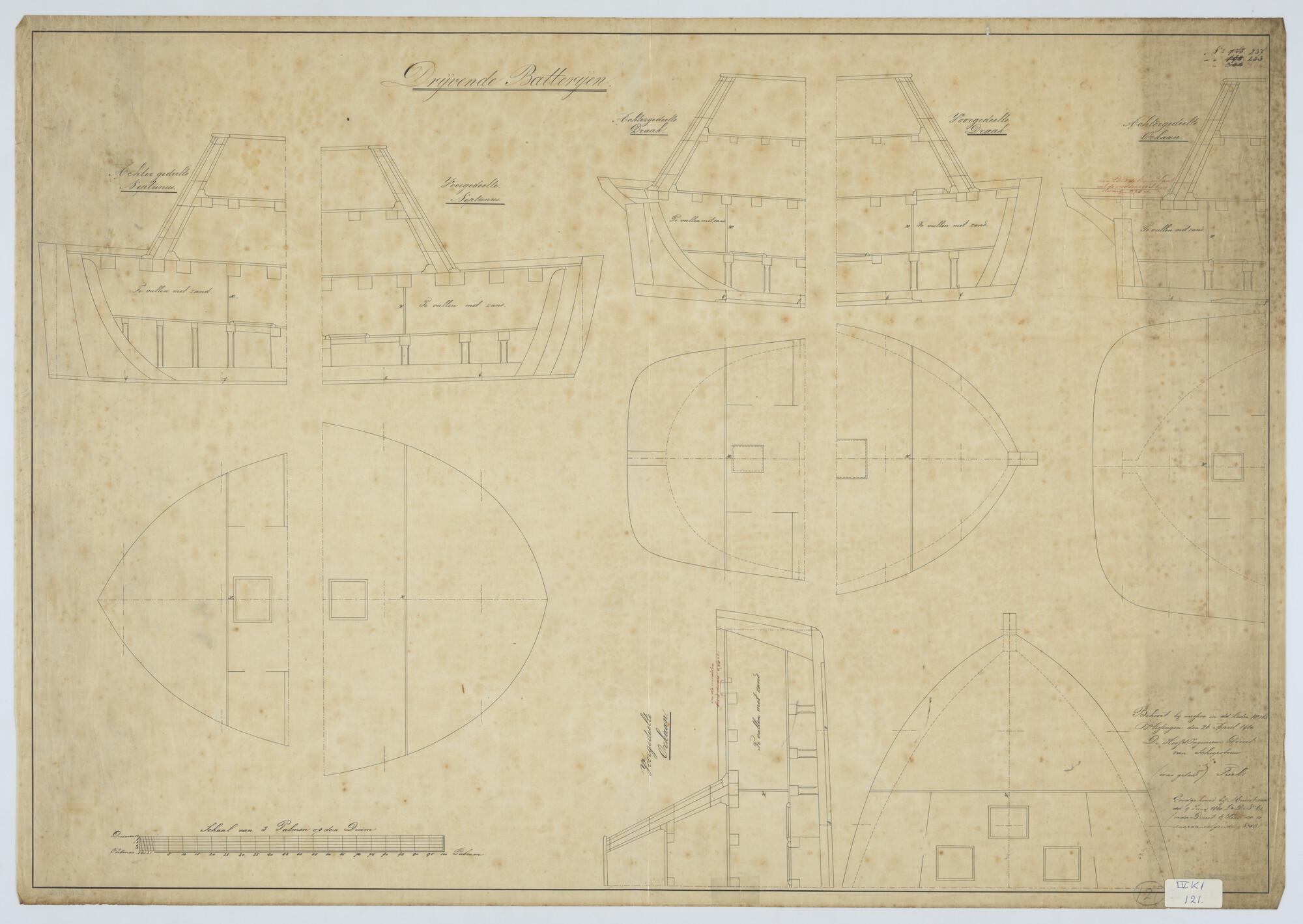Voor- en achtergedeelte van de drijvende batterijen Orkaan, Draak en Neptunus