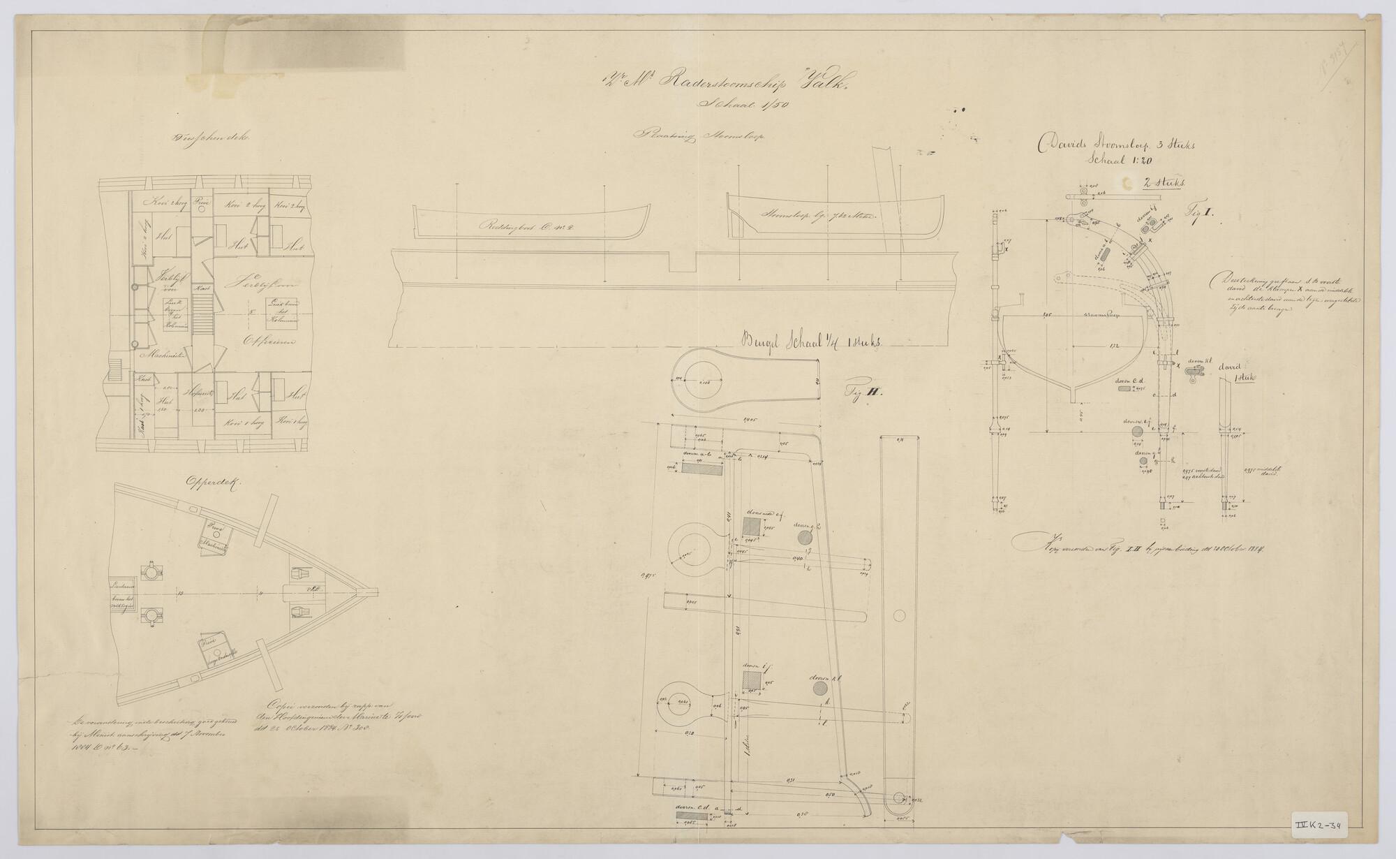 Het raderstoomschip Zr.Ms. Valk, 1863. Verandering beschieting officiers-accommodatie, plaatsing sloep.