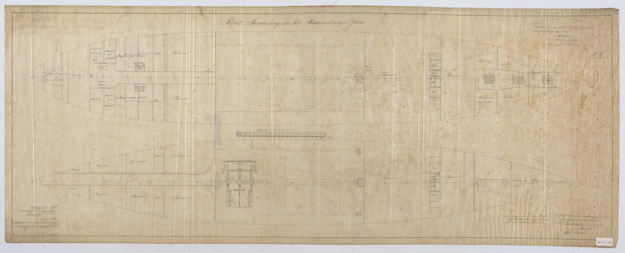 Het transportschip met stoomvermogen Zr.Ms. "Java", 1863. Koebrugdek en ruim.