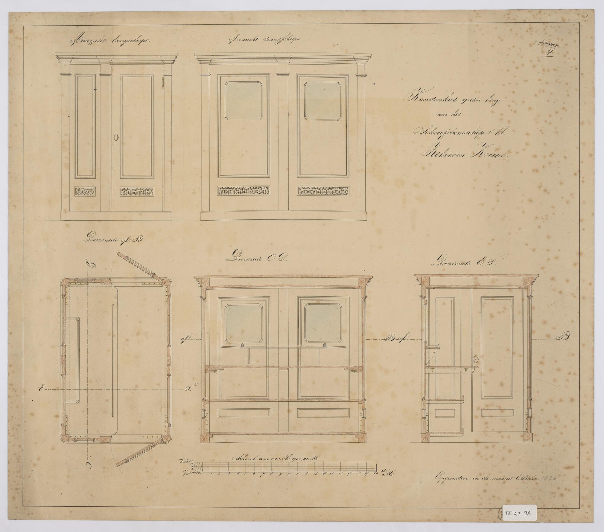 Schroefstoomschip 1ste klasse Zr.Ms. "Zilveren Kruis", 1867. Kaartenhut op de brug 1886.