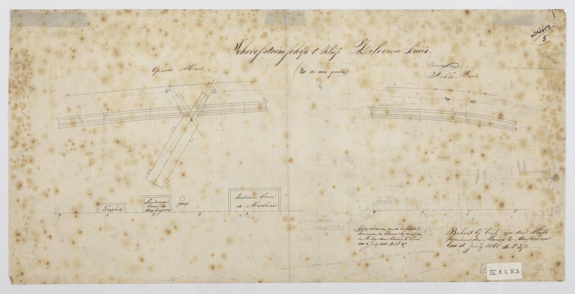 Schroefstoomschip 1ste klasse Zr.Ms. "Zilveren Kruis", 1867. Geschutspoorten bij de grote- en de fokkemast 1868.