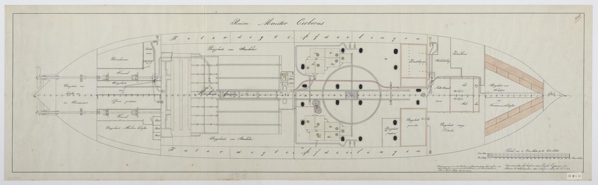 De monitor Zr.Ms. "Cerberus", 1867: ruim. Afmetingen 54.80 x 13.40 x 3.50 meter.