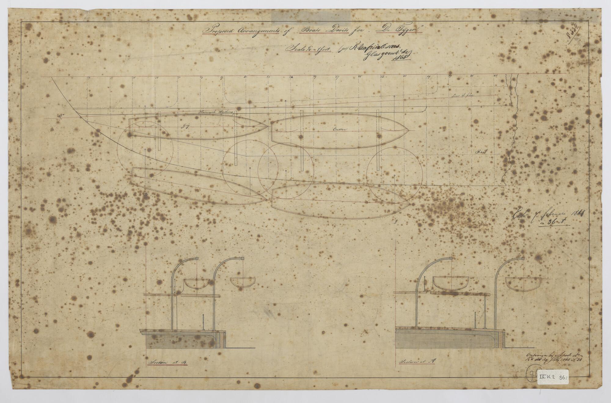 De monitor Zr.Ms. "Tijger", 1867. 187 x 44 x 11 voet. Trimtekening bij vollopen voor- en achterkompartiment.