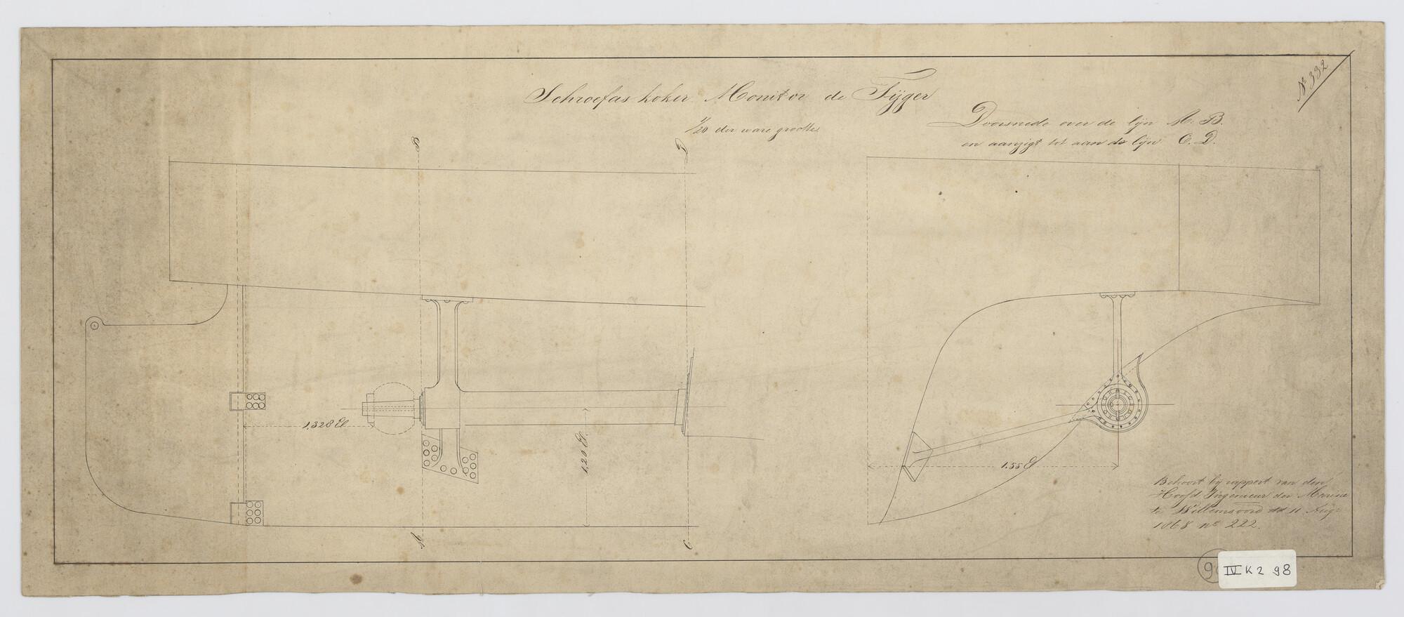 De monitor Zr.Ms. "Tijger", 1867. 187 x 44 x 11 voet. Schroefaskoker.