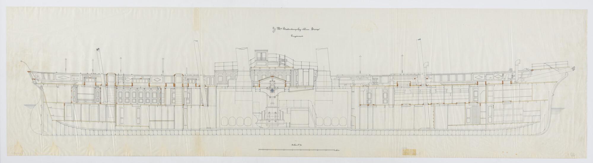 Het raderstoomschip Zr.Ms. "Bromo", 1873. verticale langsdoorsnede.