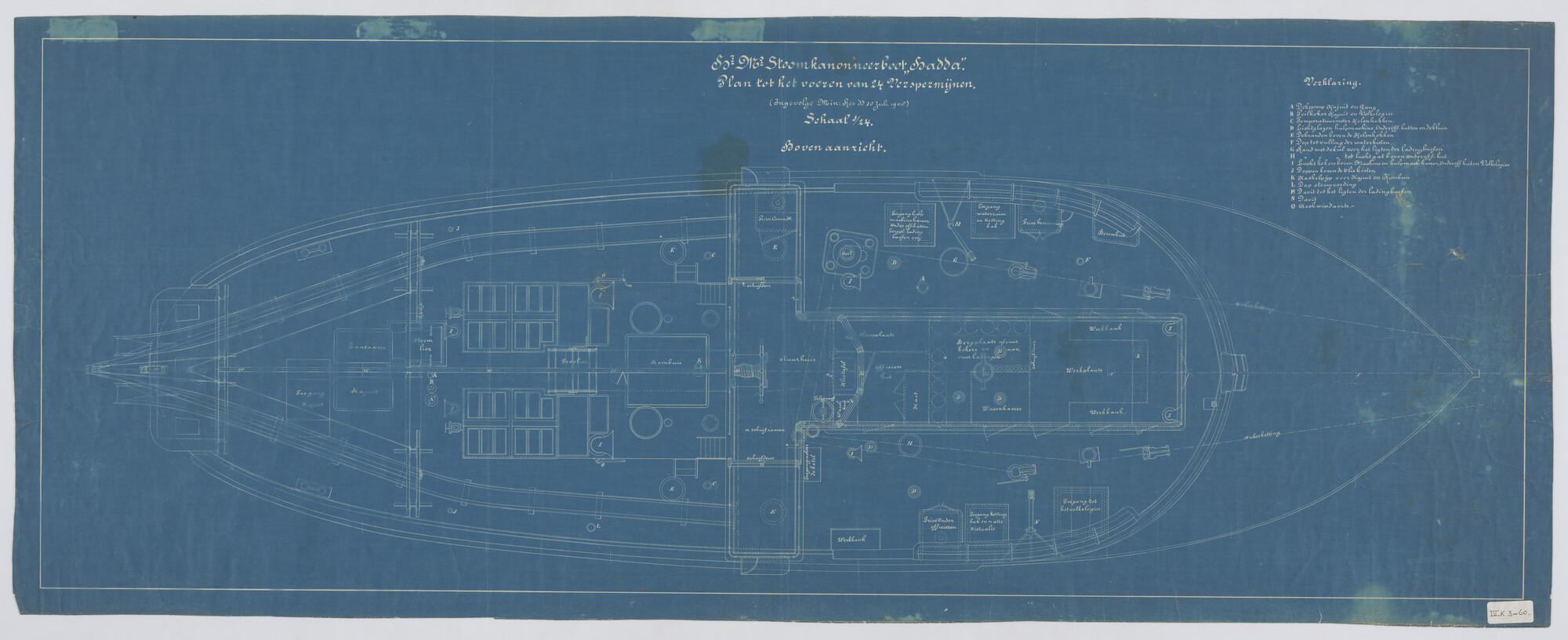 De stoomkanonneerboot Zr.Ms. "Hadda", 1879. bovenaanzicht, 1908.