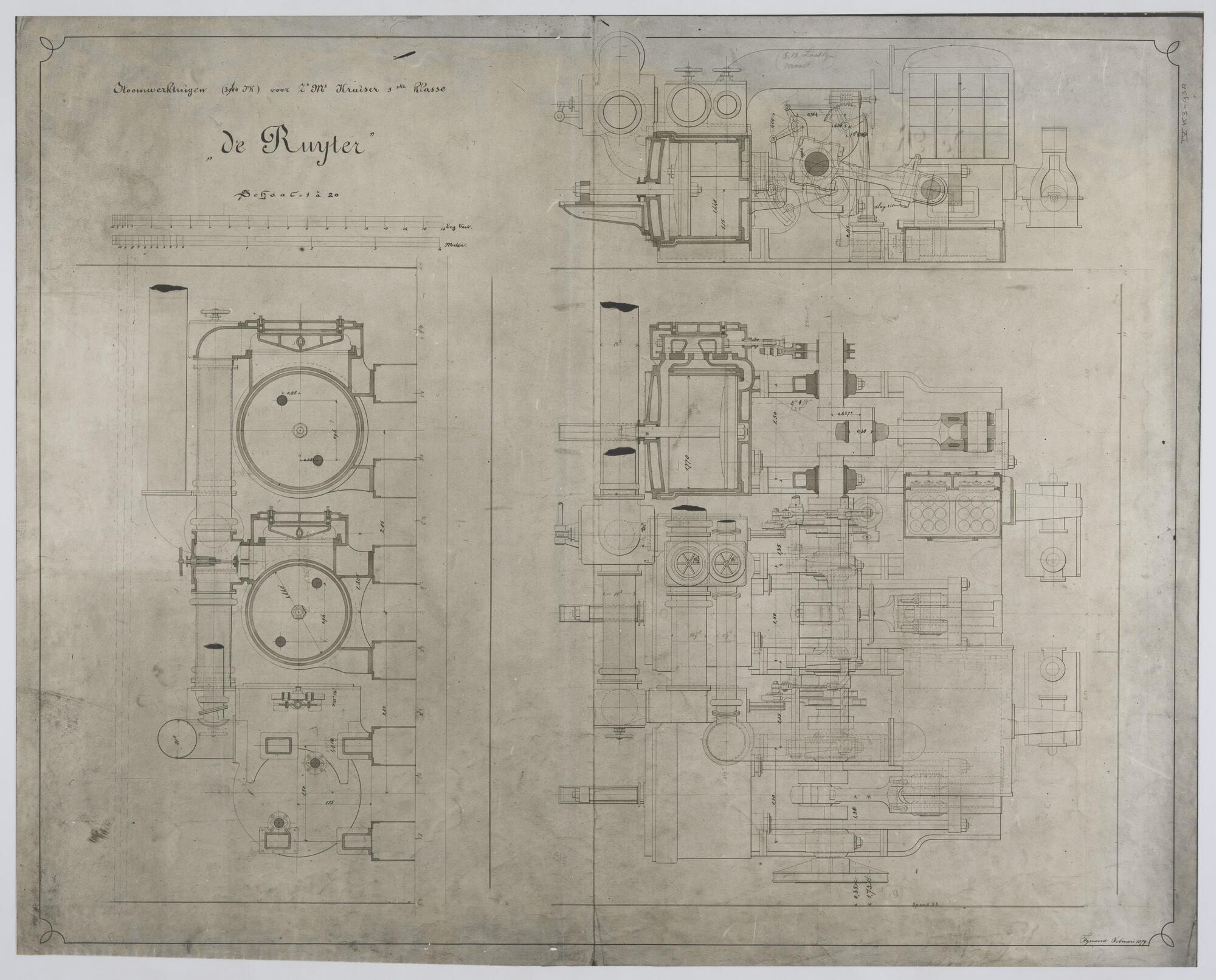 Het schroefstoomschip 1ste klasse Zr.Ms. "De Ruyter", 1879. Stoomwerktuigen 300 pk.