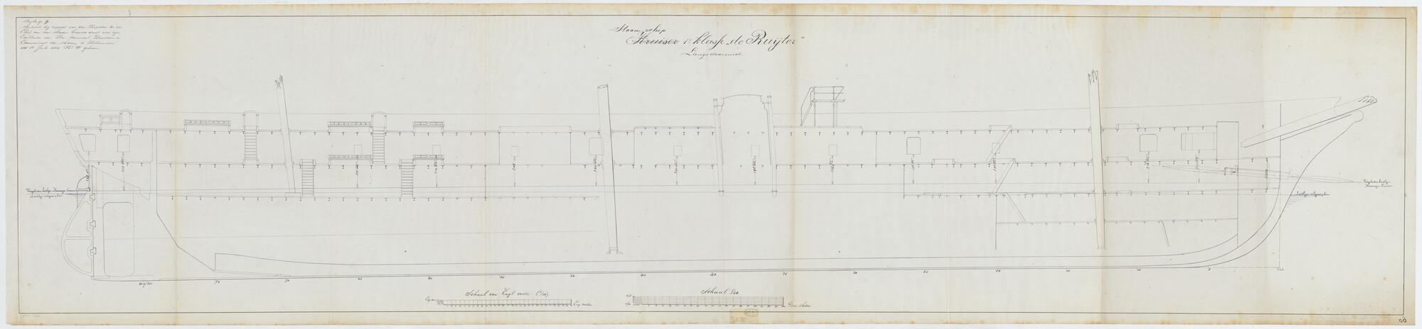 Het schroefstoomschip 1ste klasse Zr.Ms. "De Ruyter", 1879. verticale langsdoorsnede.