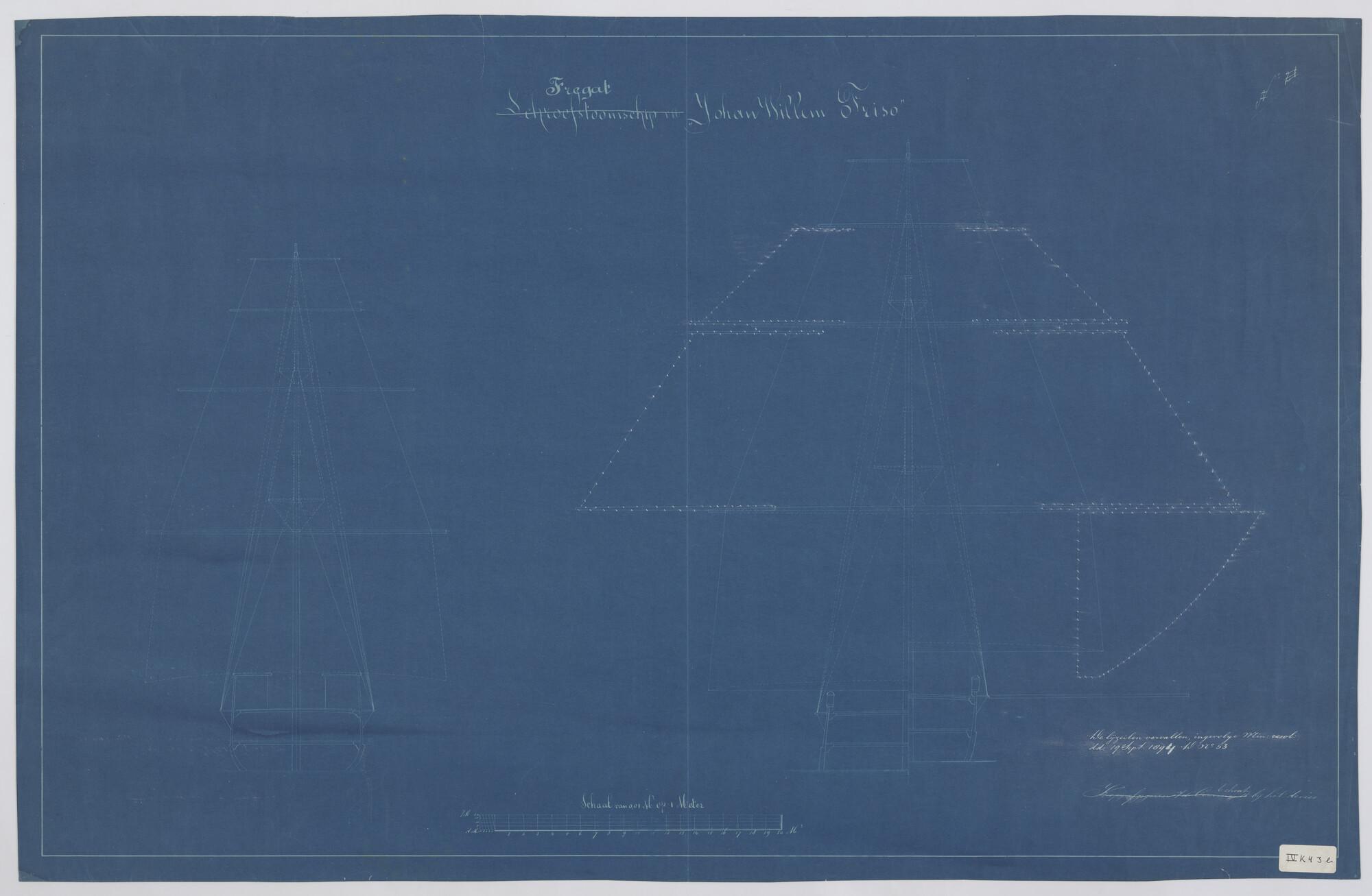 Het schroefstoomschip 1ste klasse Zr.Ms. "Johan Willem Friso", 1883. Vervallen bijzeilen 1894.