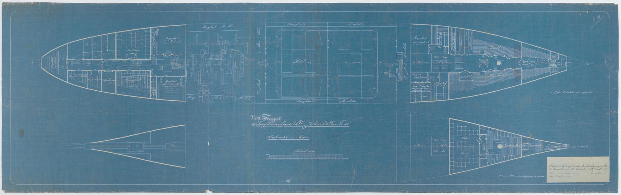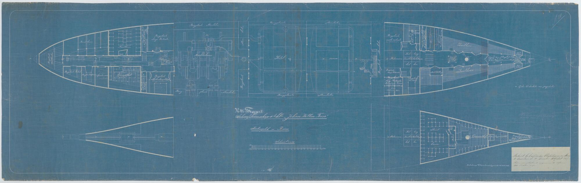 Het schroefstoomschip 1ste klasse Zr.Ms. "Johan Willem Friso", 1883. Koebrugdek en ruim.