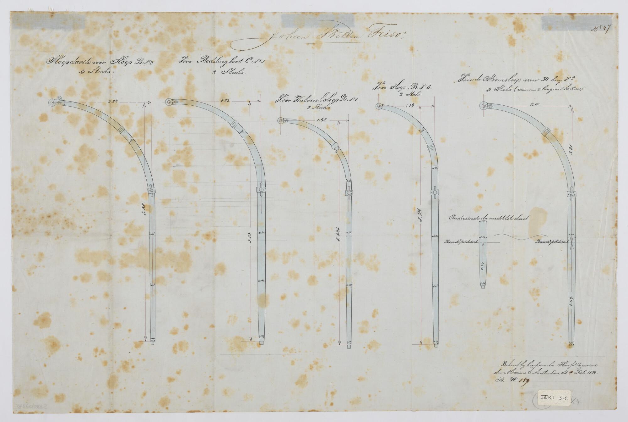 Het schroefstoomschip 1ste klasse Zr.Ms. "Johan Willem Friso", 1883. Davits.
