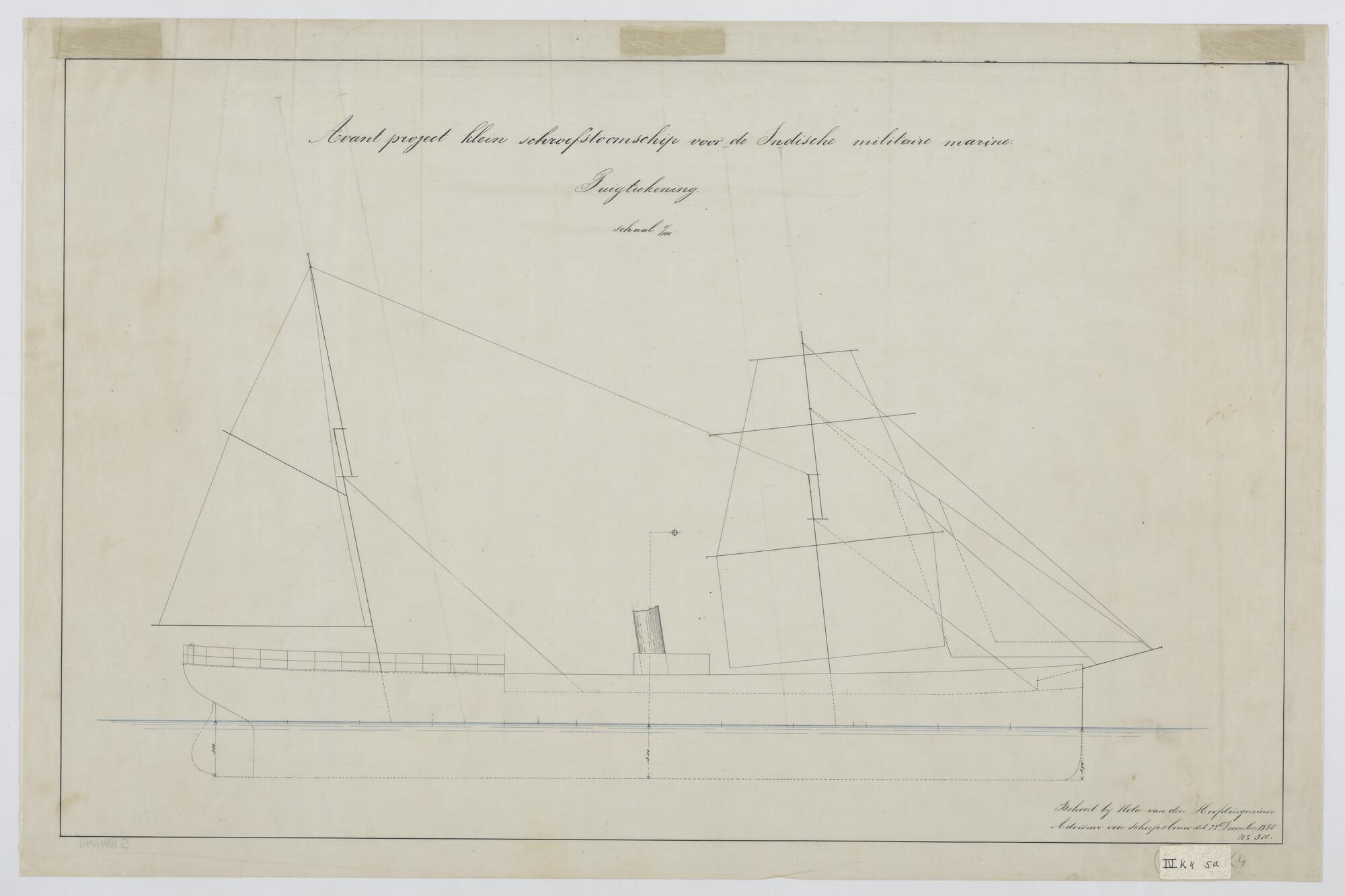 Het schroefstoomschip Zr.Ms. "Ceram", 1886. Schematische tuigtekening.