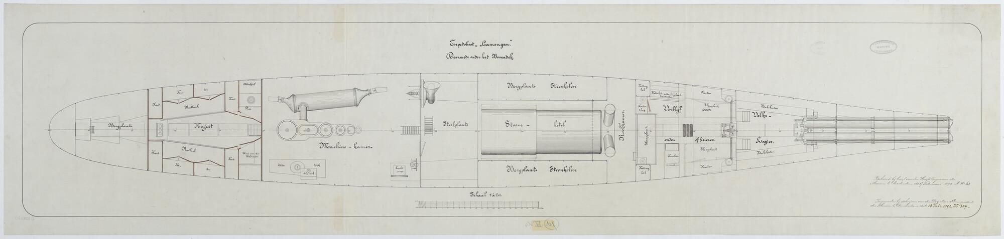 De torpedoboot Zr.Ms. "Lamongan", 1889. horizontale langsdoorsnede.