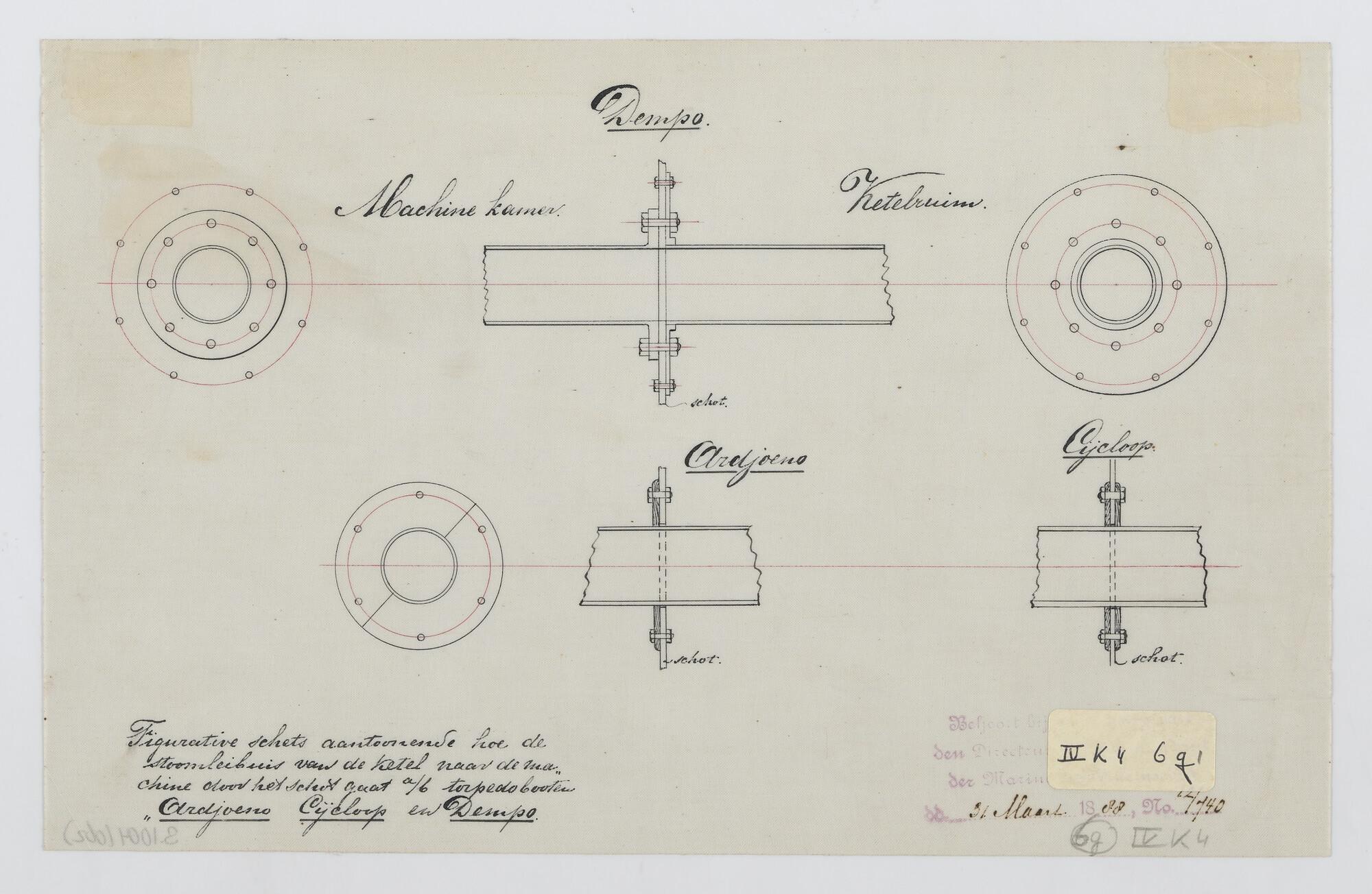 De torpedoboot Zr.Ms. "Ardjoeno", 1886. Machinekamerschot en doorvoering stoomleibuis.