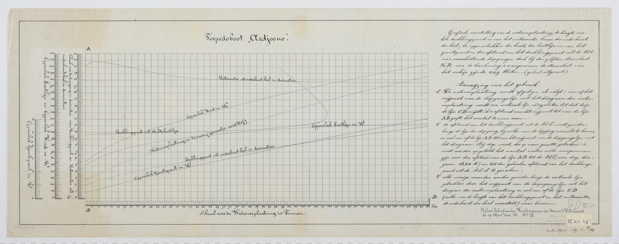 De torpedoboot Zr.Ms. "Ardjoeno", 1886. Hydrodynamische grafieken.