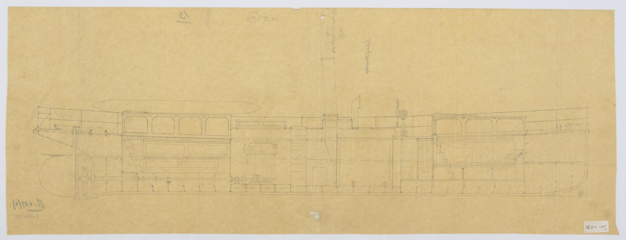 Het torpedo-communicatievaartuig Hr.Ms. "Pijl", 1891. verticale langsdoorsnede.