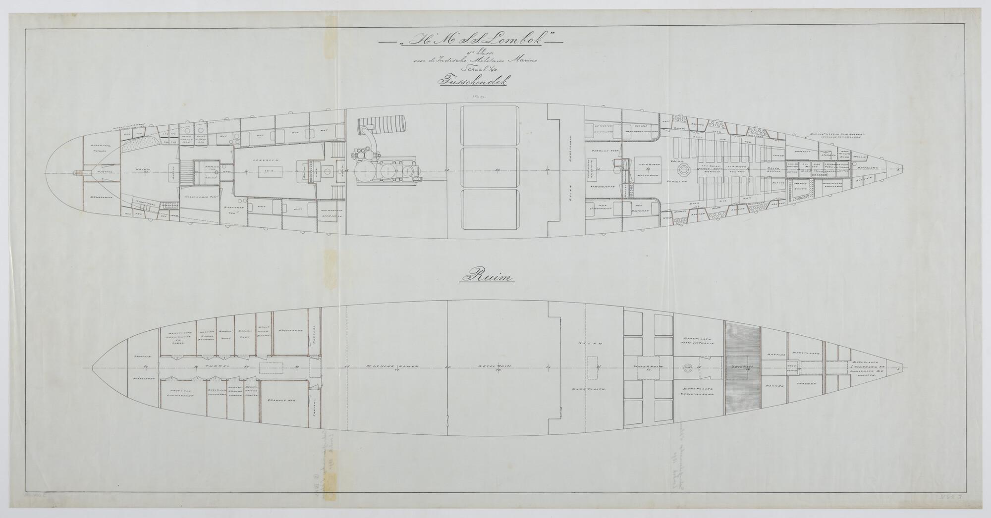 Het schroefstoomschip 4de klasse Zr.Ms. "Lombok", 1890. Tussendek en ruim.