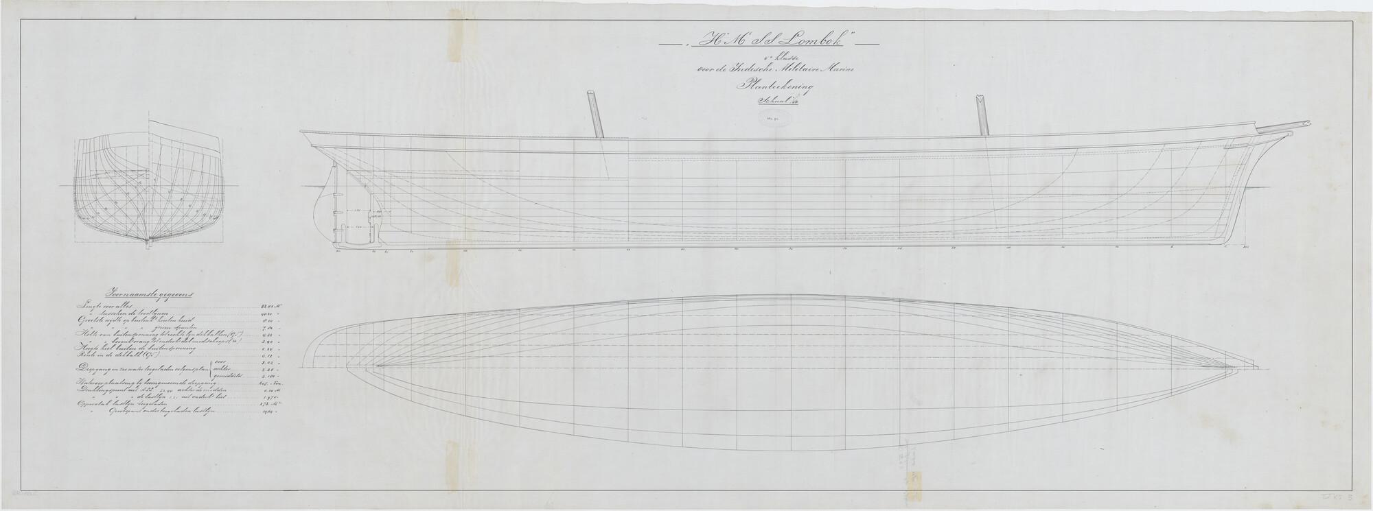 Het schroefstoomschip 4de klasse Zr.Ms. "Lombok", 1890. spantenraam, waterlijnen, verticalen.