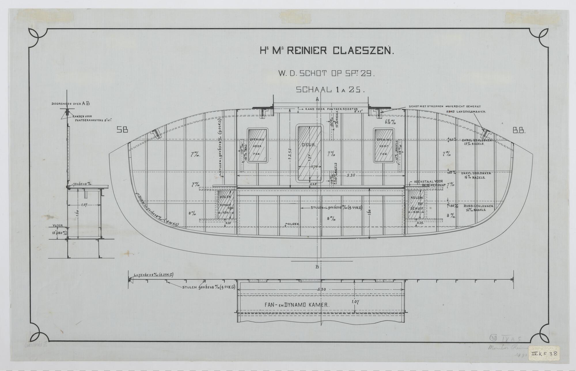 De monitor Zr.Ms. "Reinier Claeszen", 1890. WD schot op spant 29.