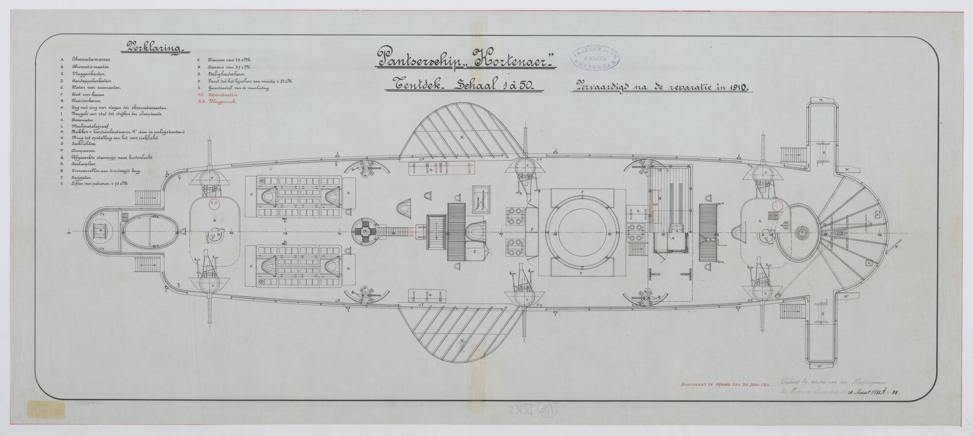 Het pantserschip Hr.Ms. "Kortenaer", 1893. Tentdekplan.