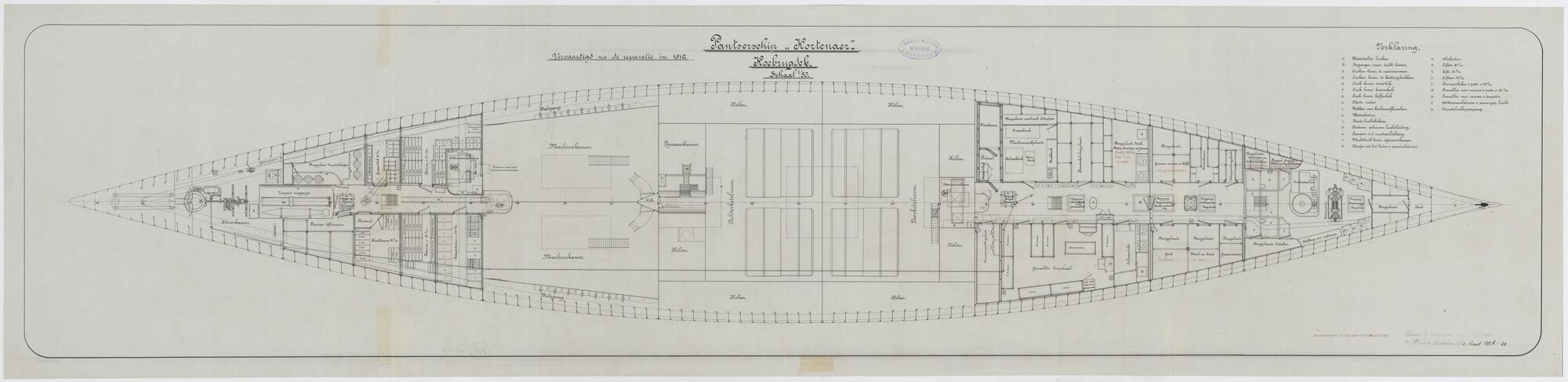 Het pantserschip Hr.Ms. "Kortenaer", 1893. Algemeen plan koebrugdek.
