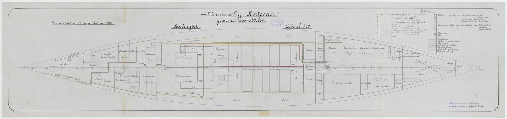 Het pantserschip Hr.Ms. "Kortenaer", 1893. Gemeenschapsmiddelen koebrugdek.