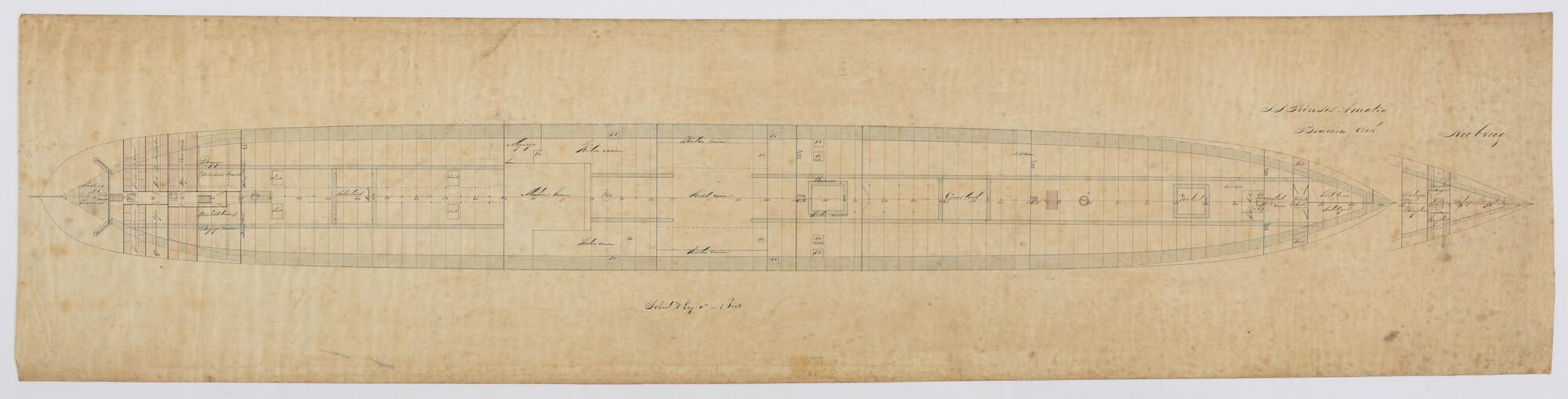 Horizontale langsdoorsnede van het schroefstoomschip Prinses Amalia, 1874